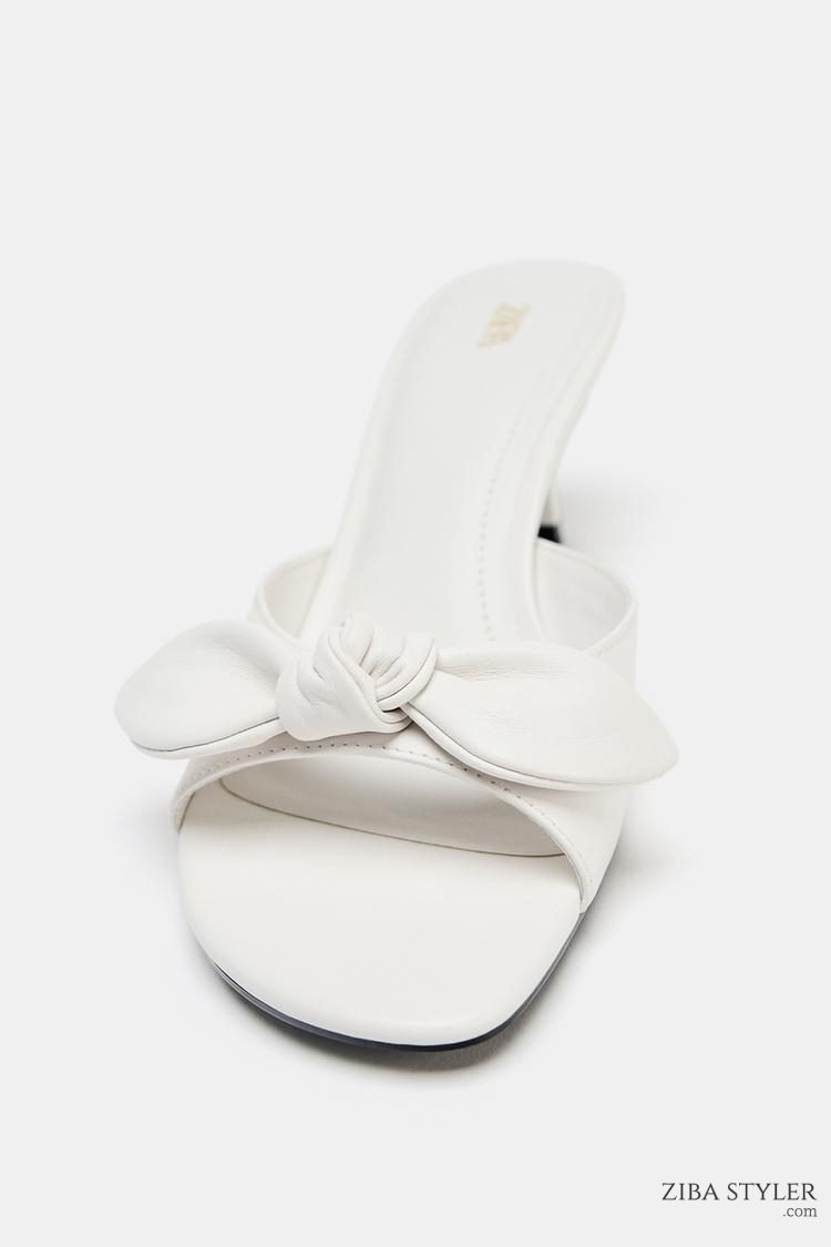 صندل پاشنهدار چرمی زنانه پاپیوندار زارا – ZARA