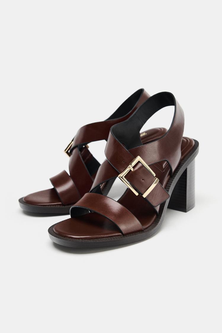 صندل چرمی زنانه پاشنهدار سگکدار زارا – ZARA