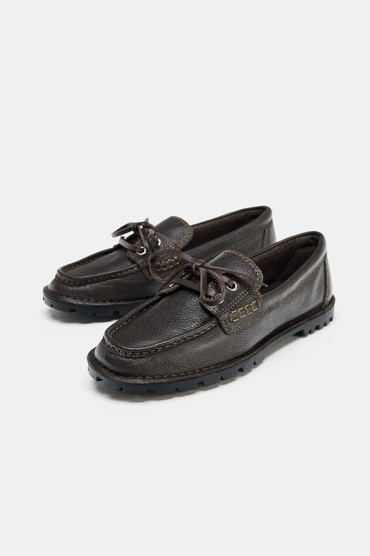 کفش دک زنانه چرمی زیره عاجدار زارا – ZARA