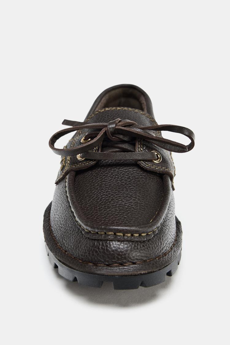 LEATHER DECK SHOES WITH CLEATED SOLE