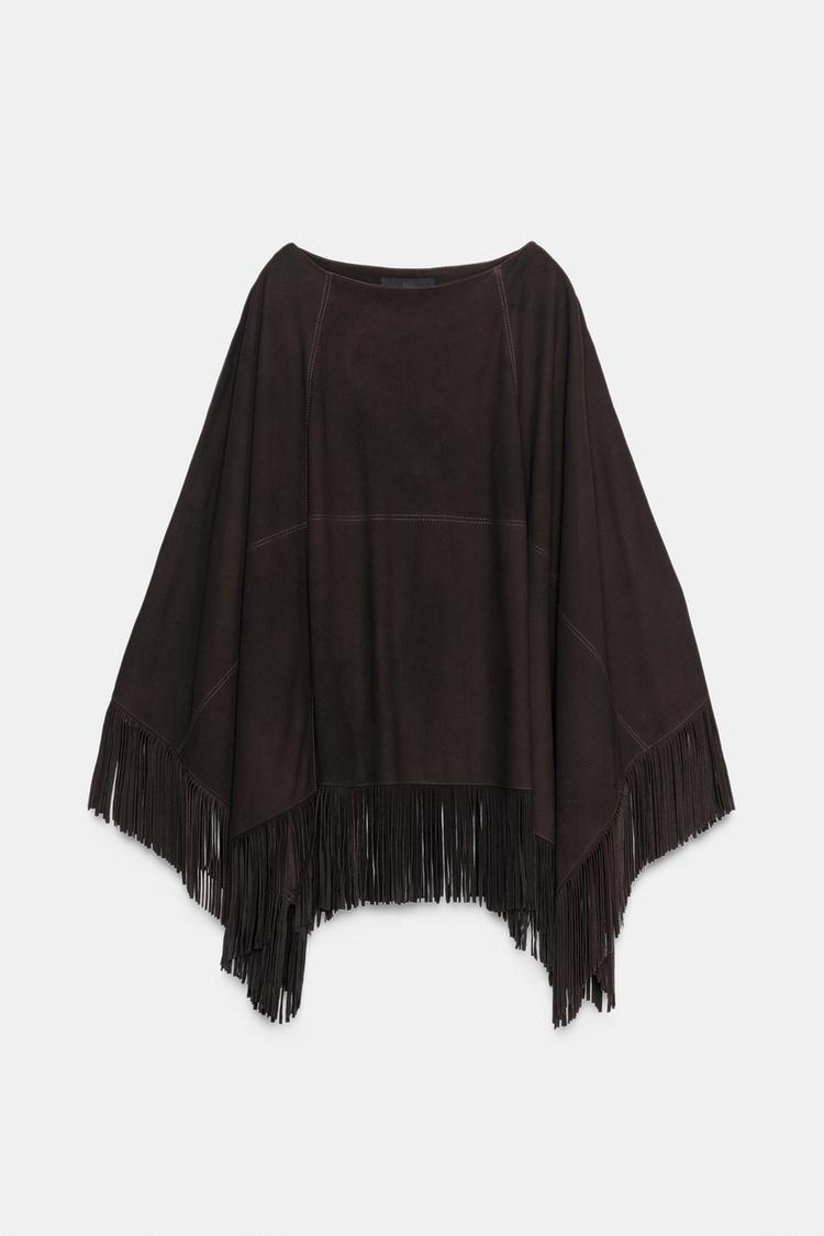 LEATHER FRINGED CAPE