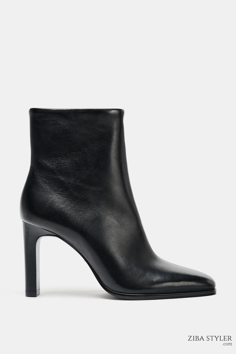 نیم بوت زنانه چرم پاشنه بلند زارا – ZARA