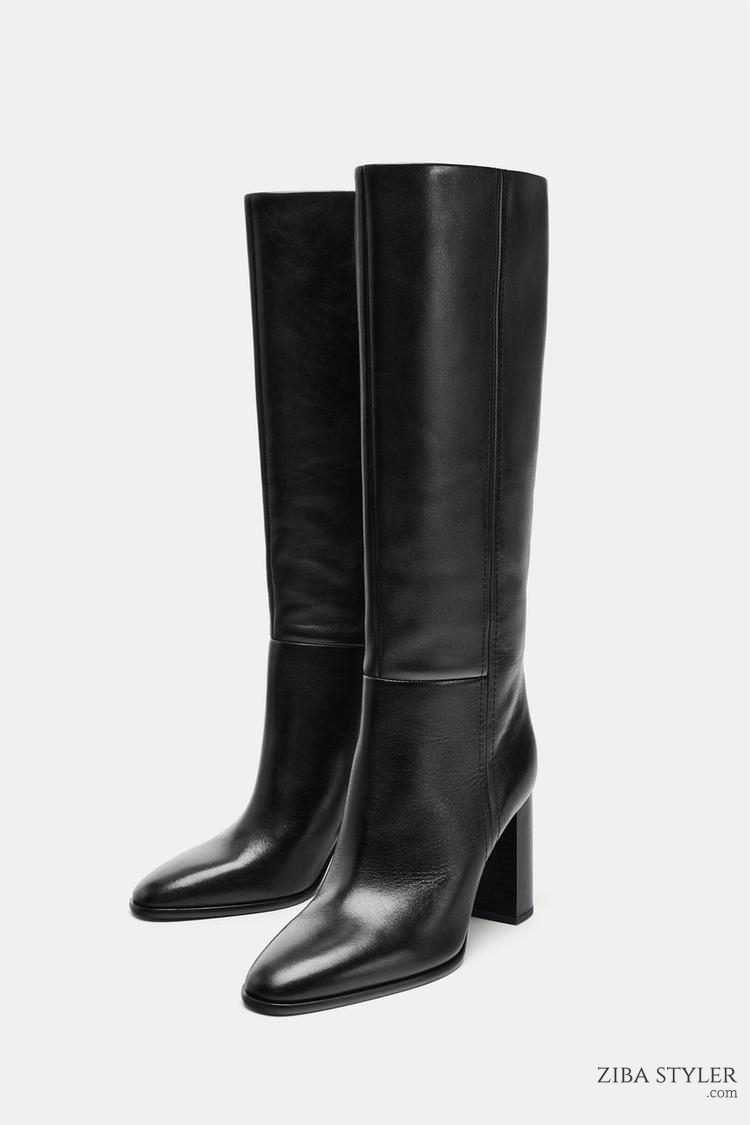 بوت زنانه چرم پاشنه بلند ساقبلند زارا – ZARA