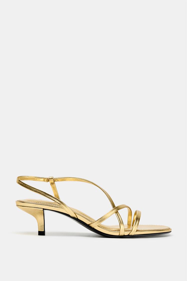 LEATHER KITTEN HEEL SANDALS