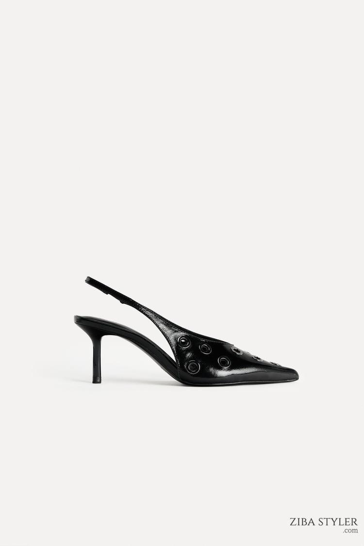 کفش پاشنه بلند زنانه چرمی پشت باز پانچدار زارا – ZARA