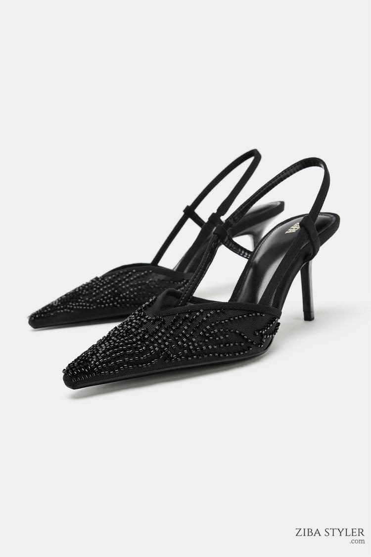 کفش پاشنه بلند زنانه مش نگیندار پشت باز زارا – ZARA