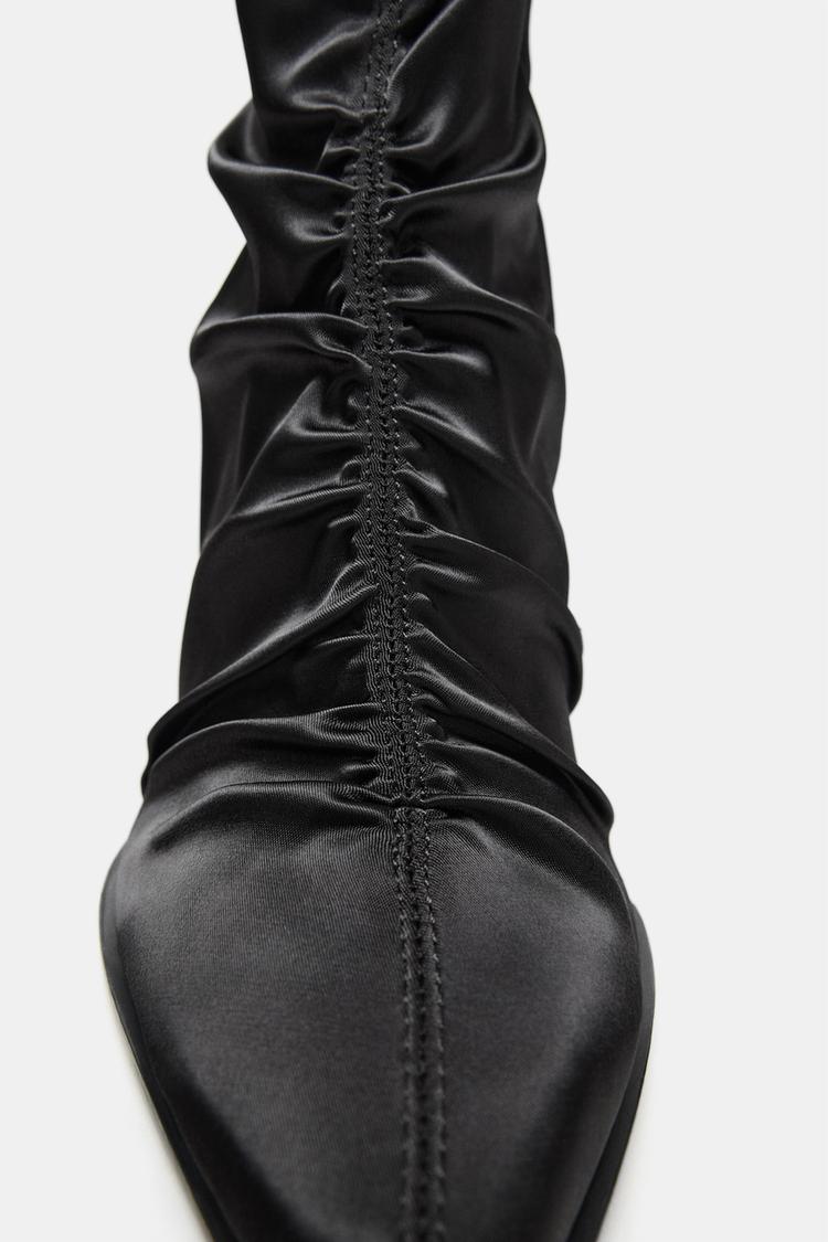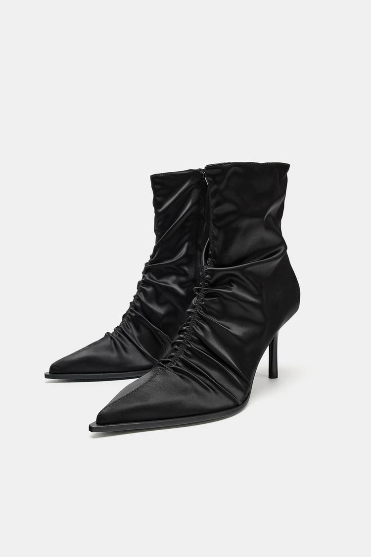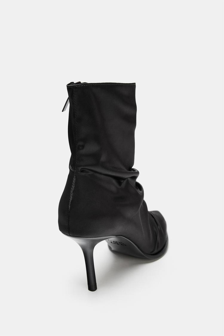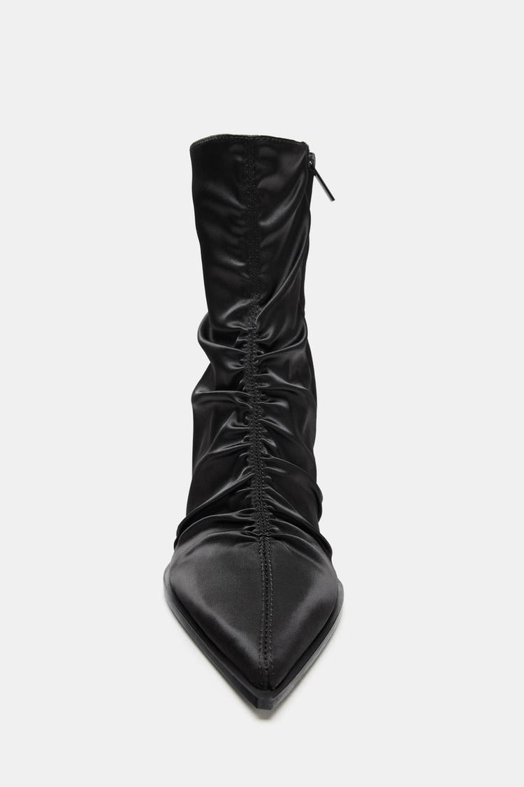 SATIN-EFFECT RUCHED HEELED ANKLE BOOTS