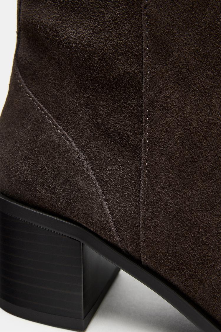 SPLIT SUEDE BLOCK HEEL ANKLE BOOTS
