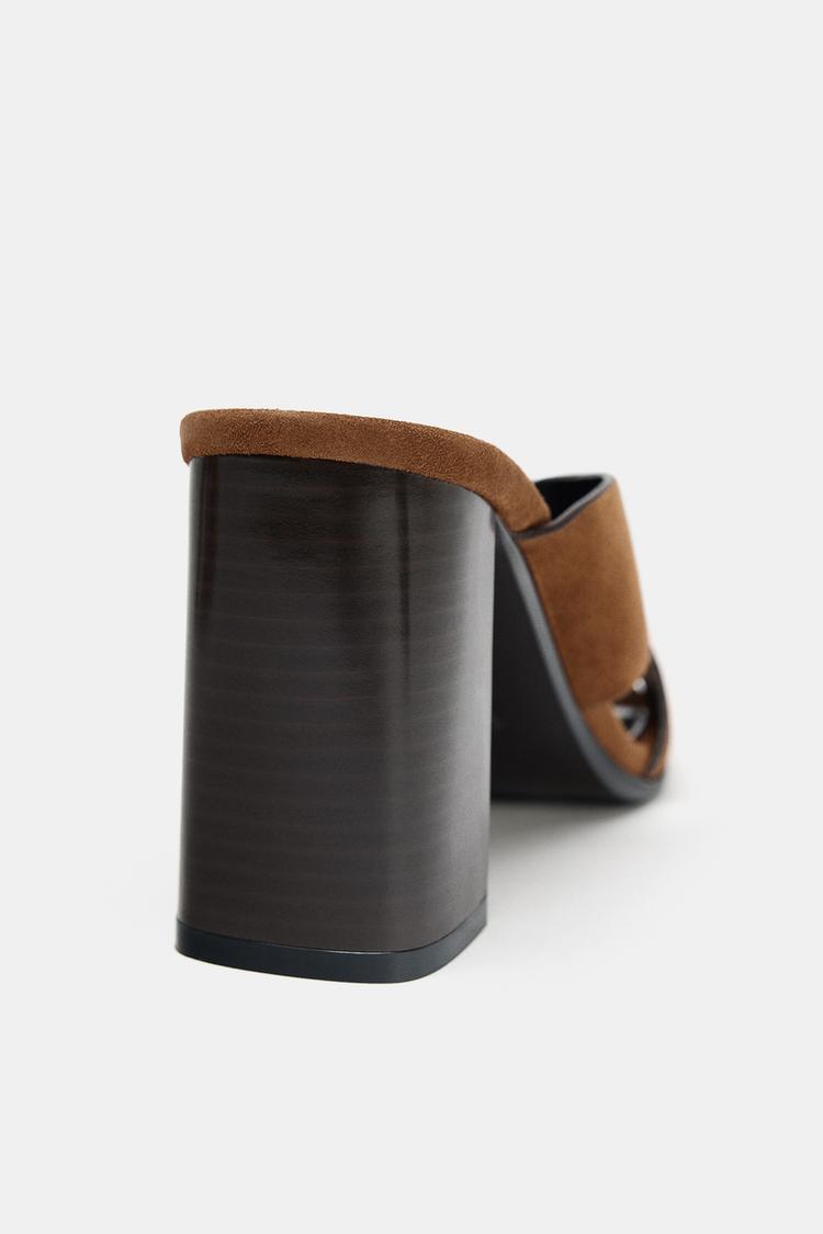 SPLIT SUEDE BLOCK HEEL SANDALS