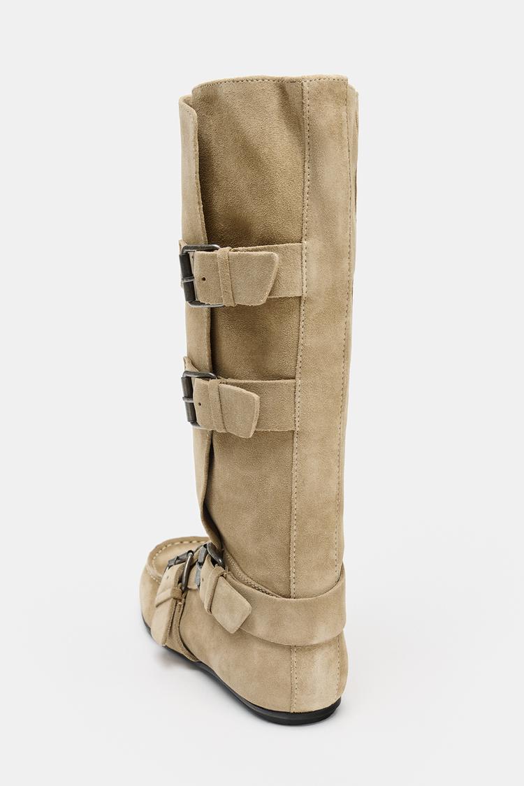 SPLIT SUEDE BUCKLED BOOTS