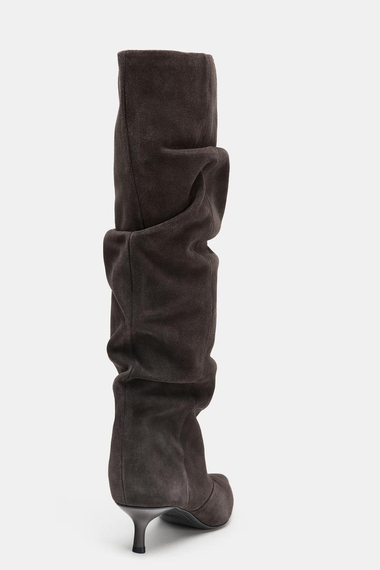SPLIT SUEDE KITTEN HEEL BOOTS