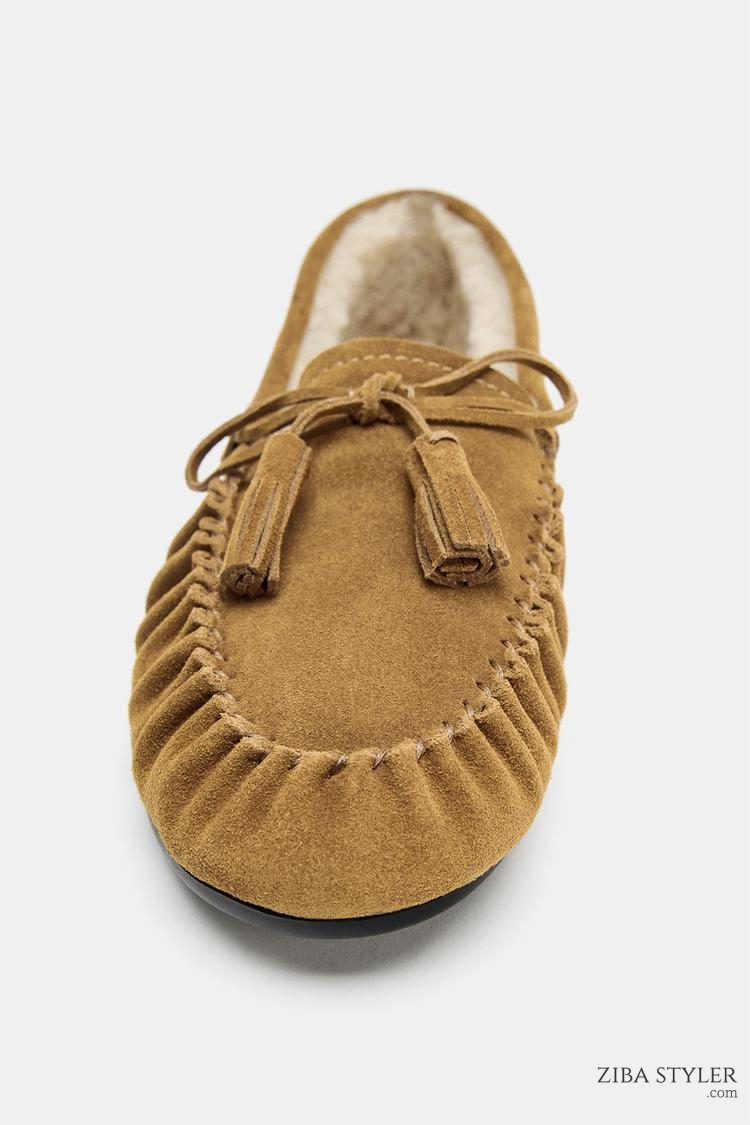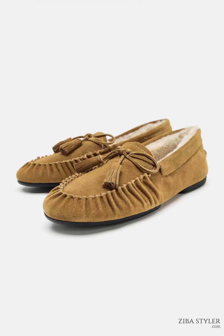 کفش لوفر زنانه جیر آستر پشمی مصنوعی زارا – ZARA