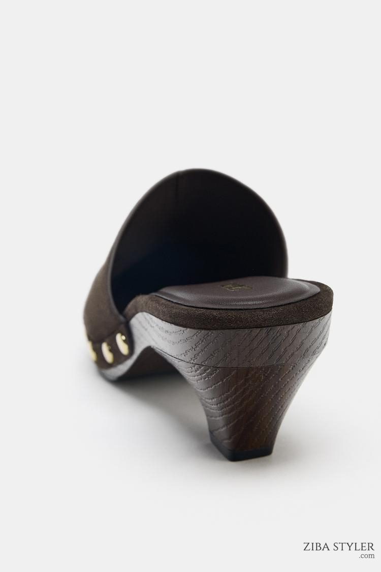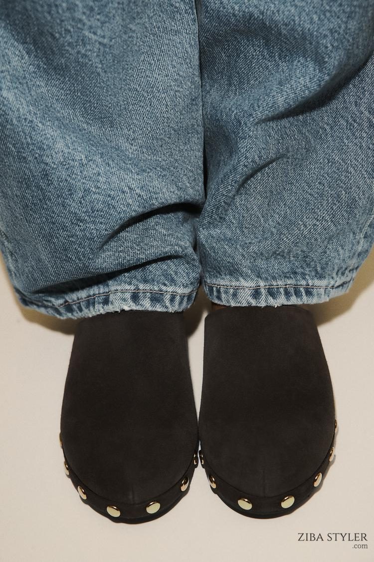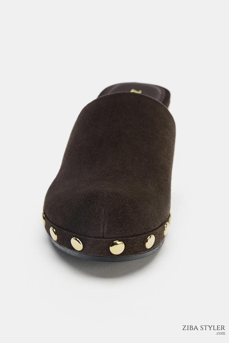 SPLIT SUEDE STUDDED KITTEN CLOGS