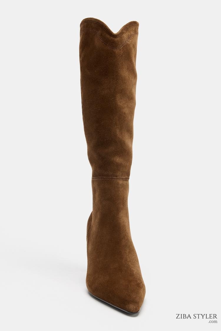 STITCHED SPLIT SUEDE HEELED BOOTS