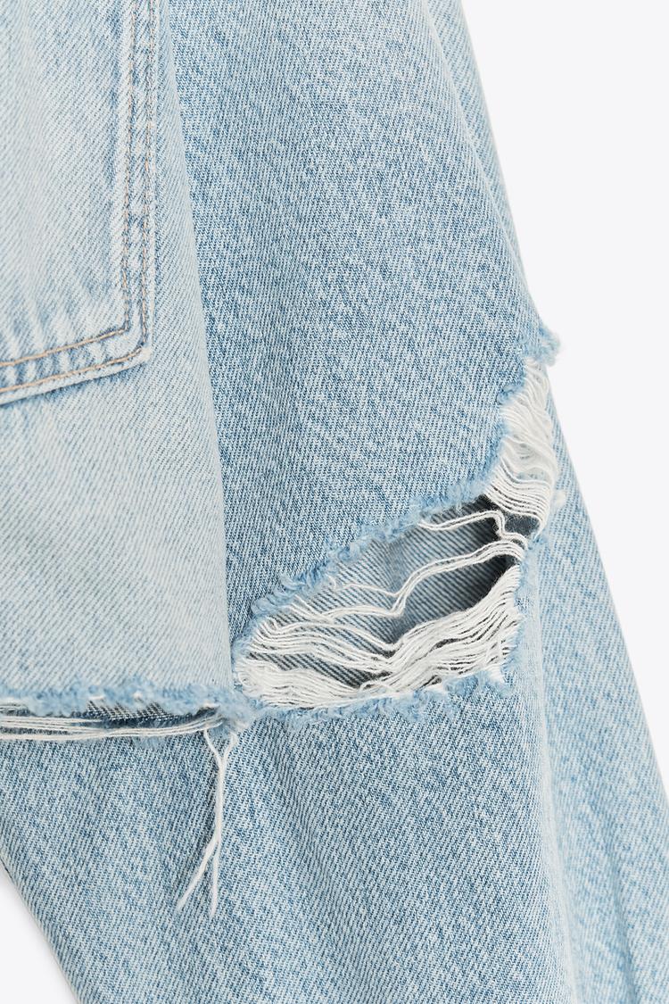 TRF RIPPED CROP DENIM OVERSHIRT