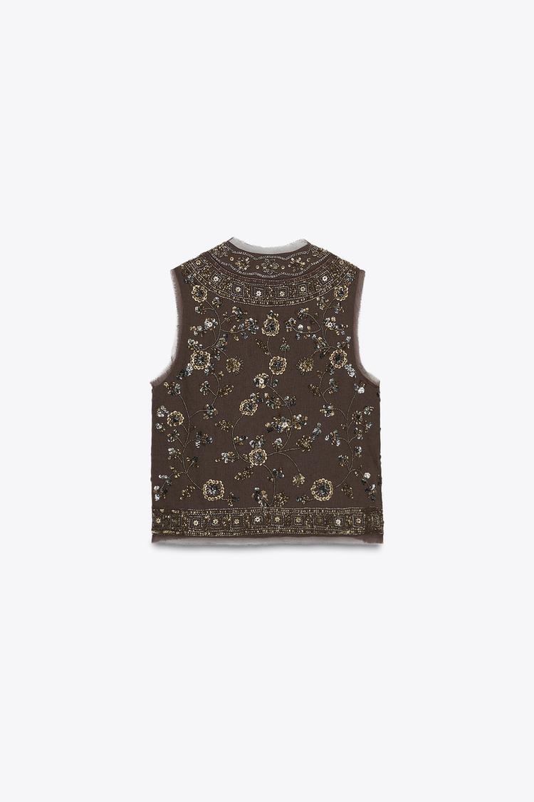 جلیقه زنانه گلدوزی و منجوقدوزی کالکشن ZW زارا – ZARA