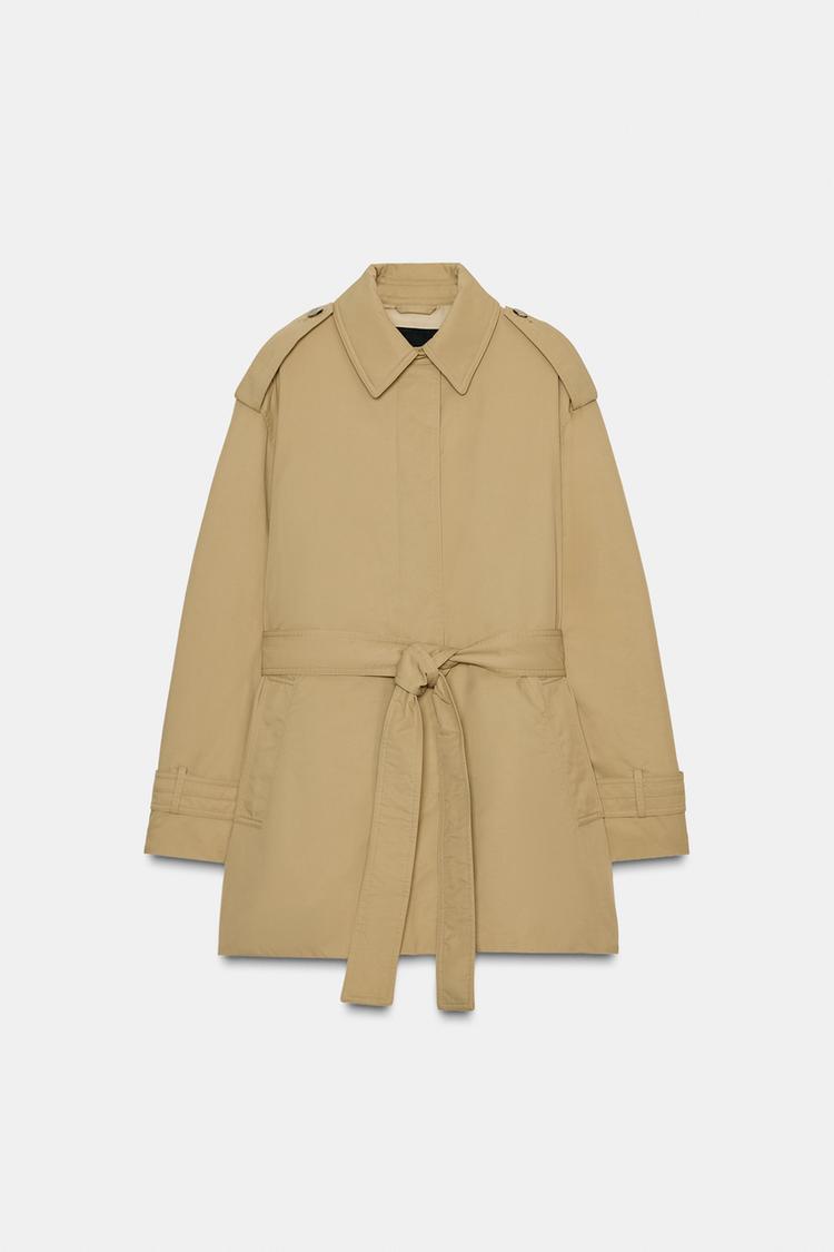 ترنچ کت زنانه پددار کمربنددار کالکشن ZW زارا – ZARA