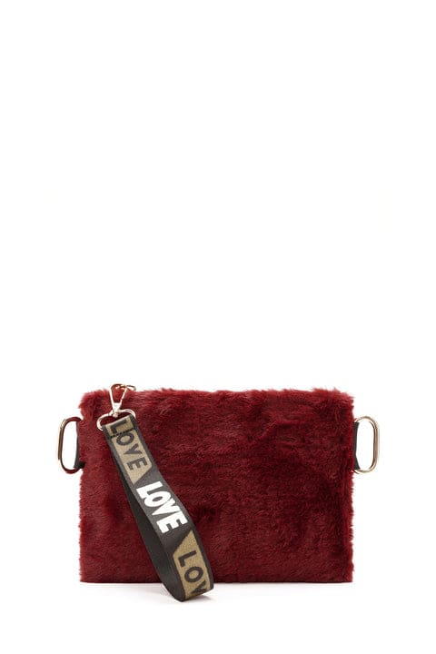Kadın Bordo Uzun Askılı Peluş Portföy Çanta