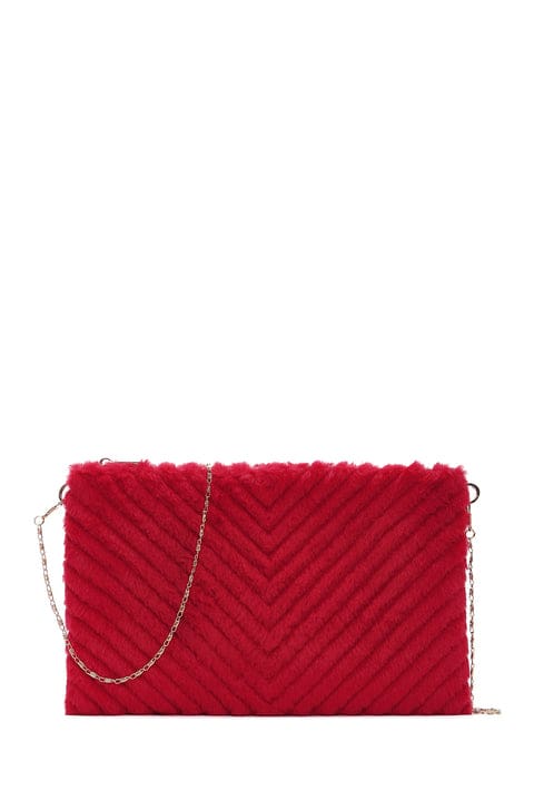 Kadın Kırmızı Uzun Askılı Peluş Portföy Çanta