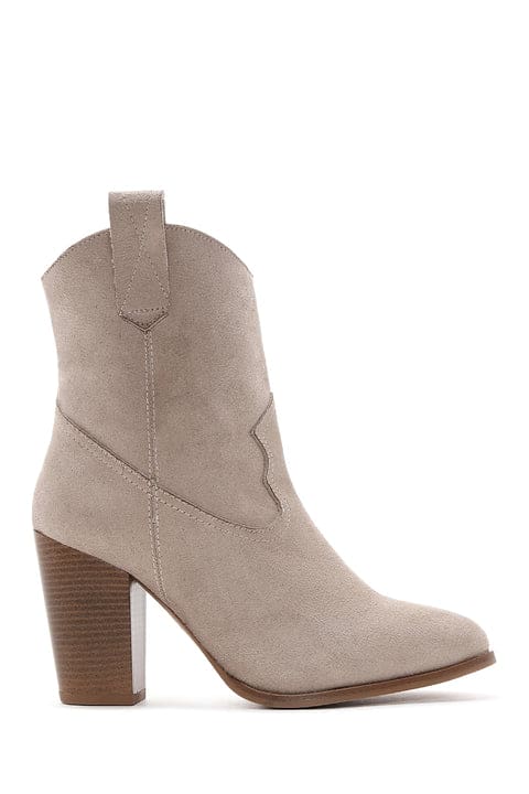 بوت کابوی پاشنه دار بژ زنانه دری مد
