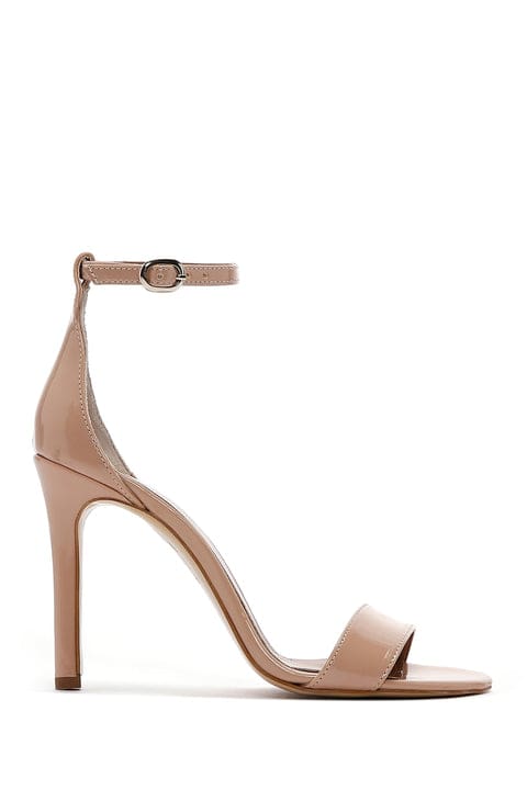Kadın Bej Deri Rugan Topuklu Sandalet