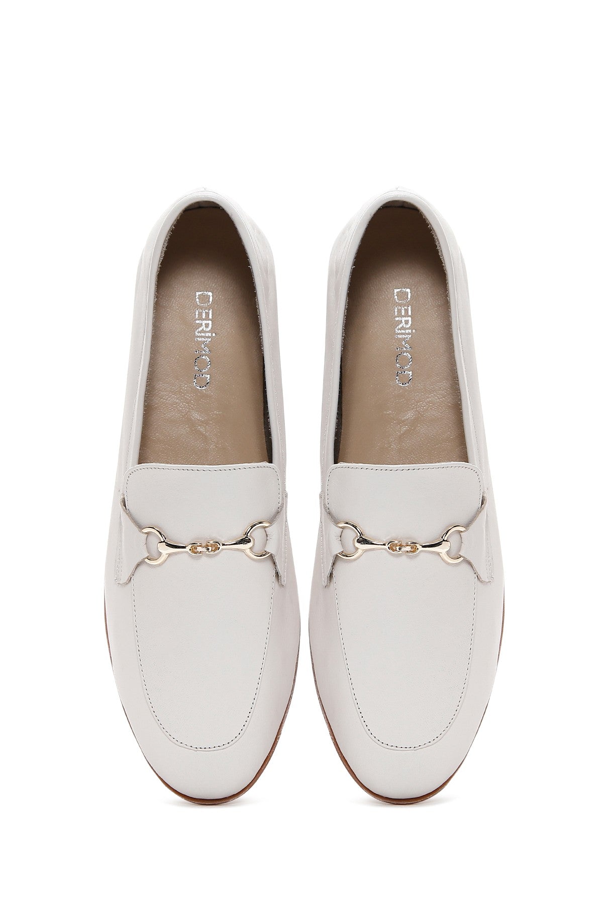 Kadın Krem Deri Maskülen Loafer