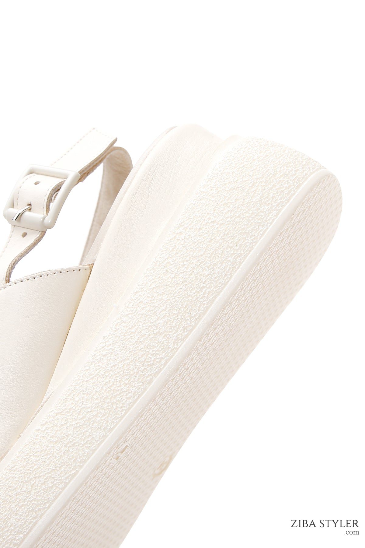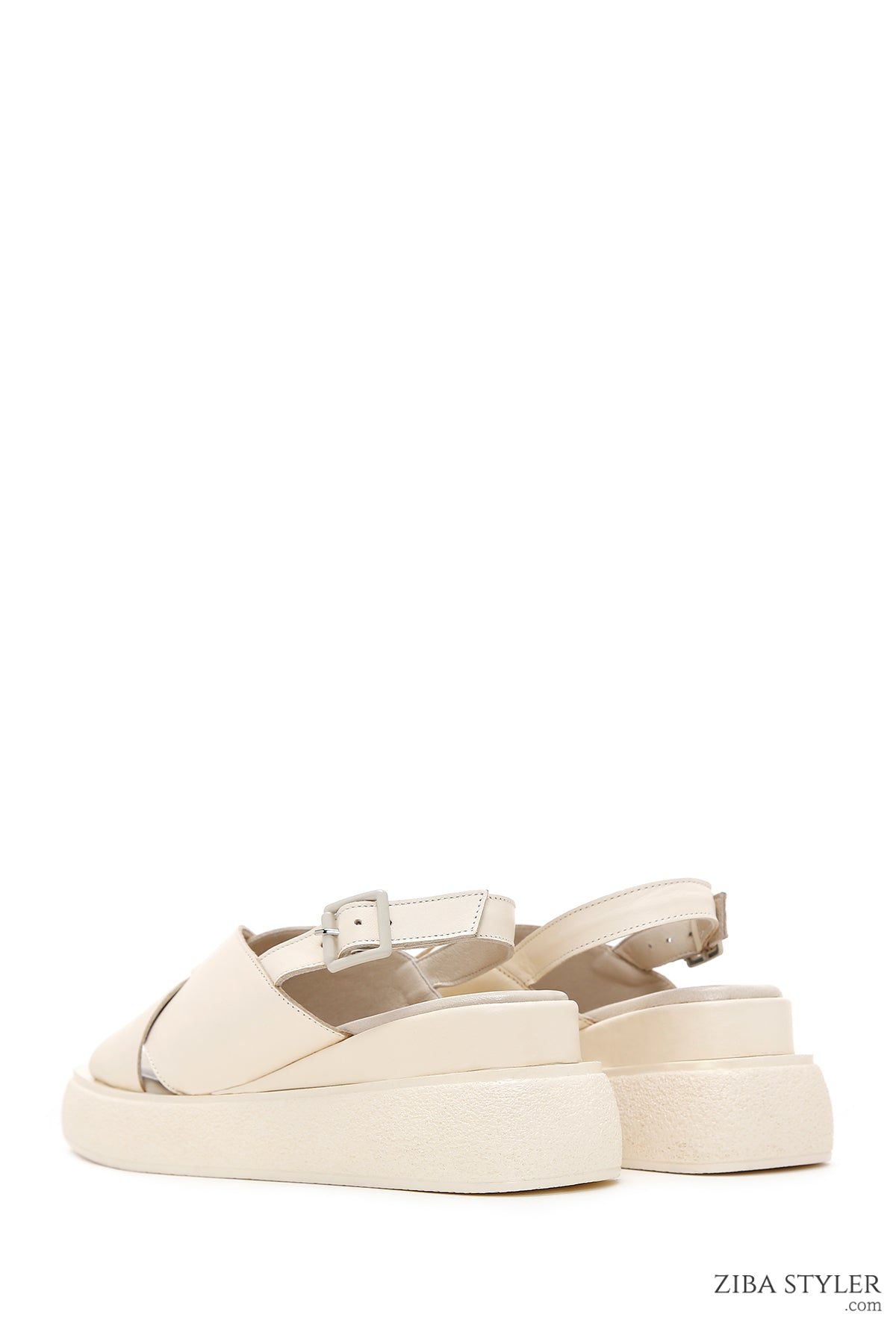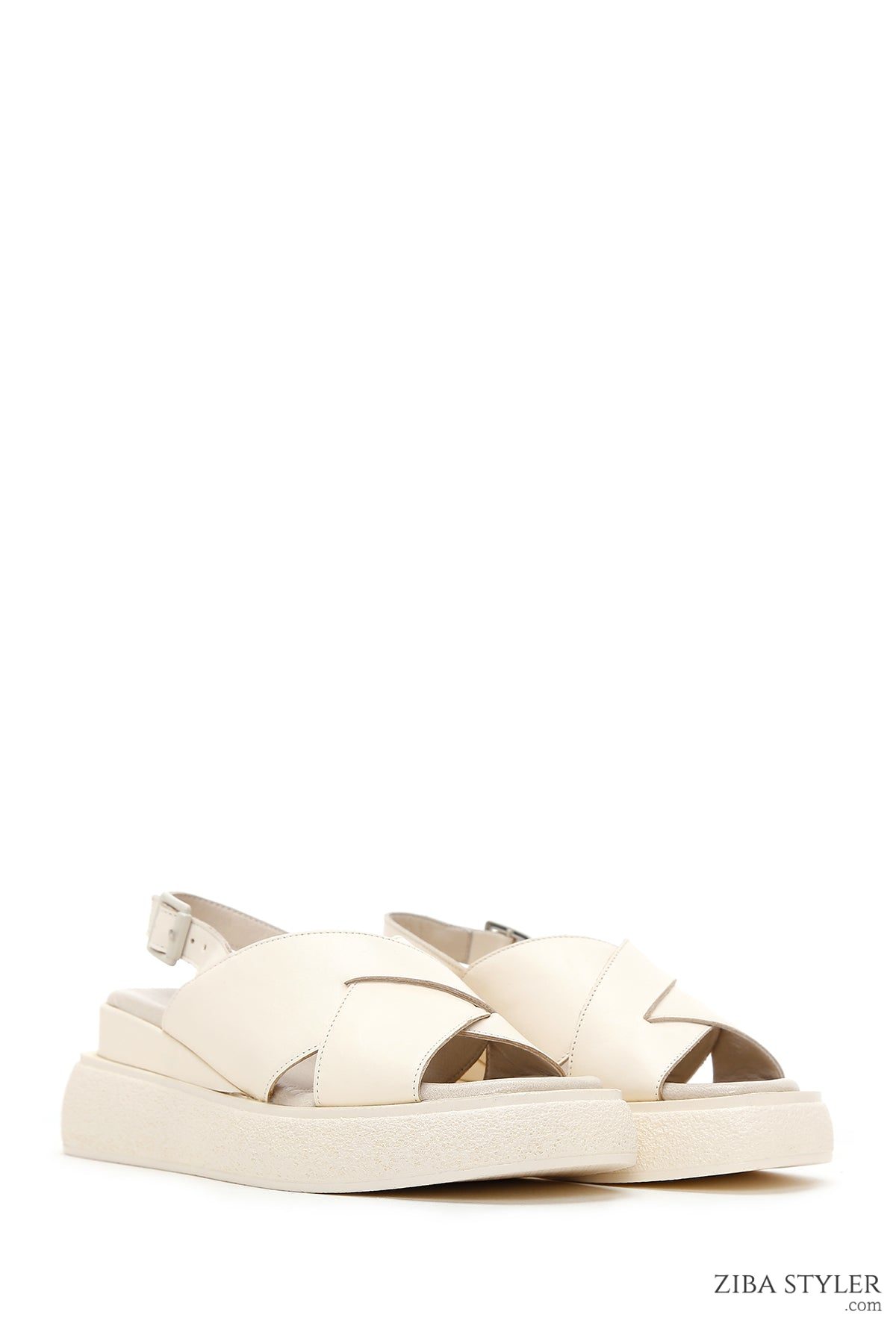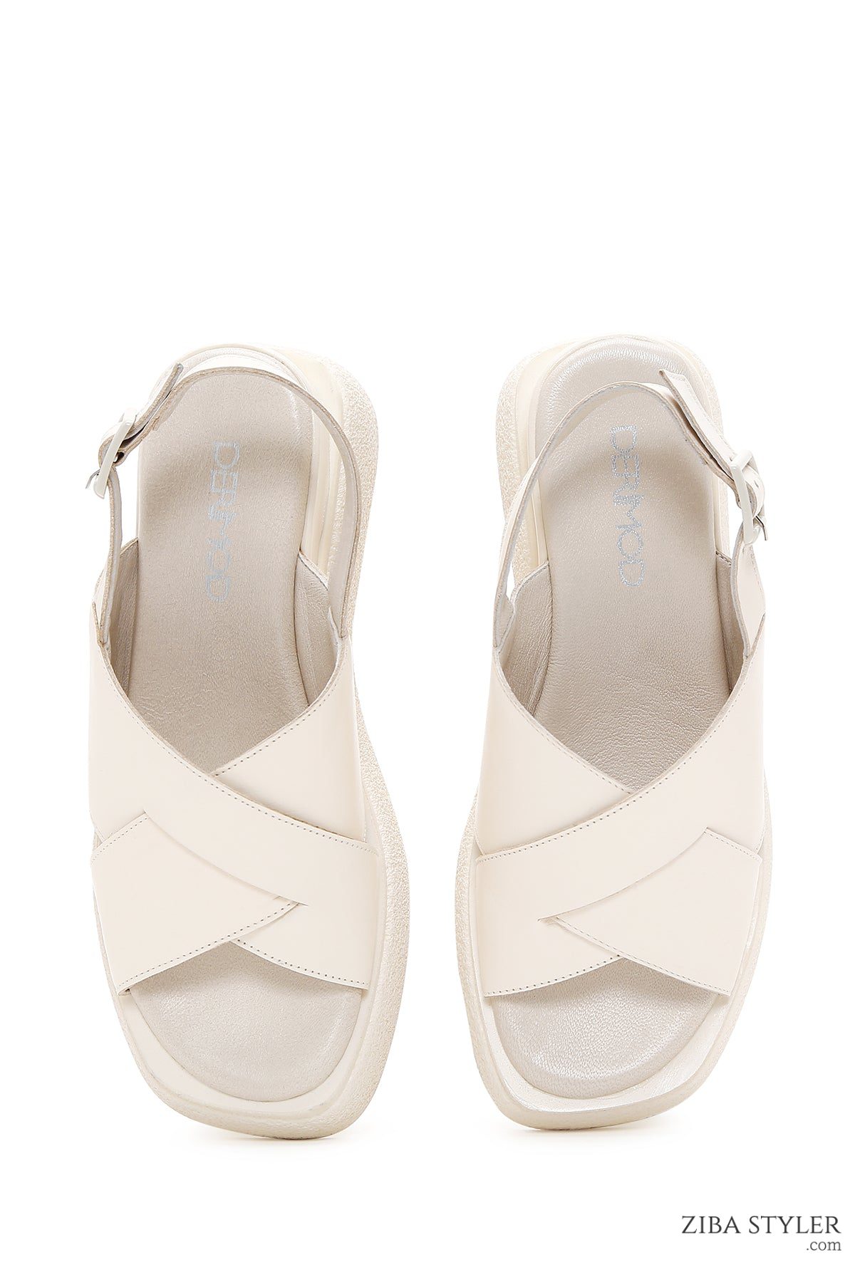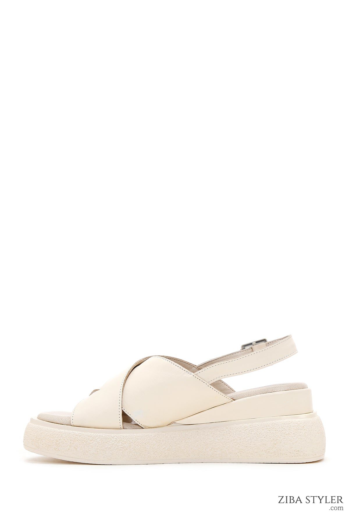 صندل چرمی بند دار ضخیم بژ زنانه دری مد
