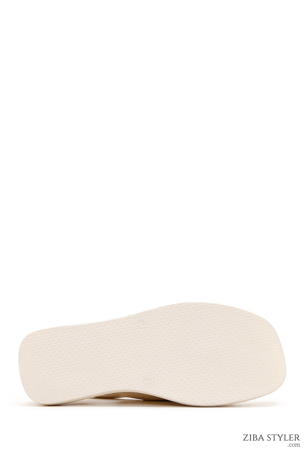 Kadın Bej Bilekten Bantlı Kalın Tabanlı Deri Sandalet