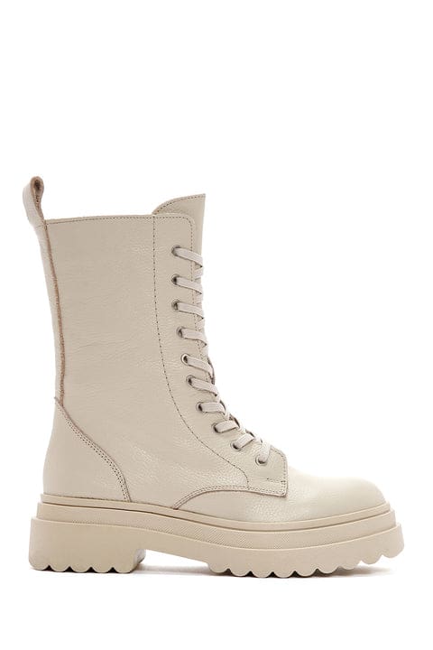 بوت زیره ضخیم چرم بژ زنانه دری مد