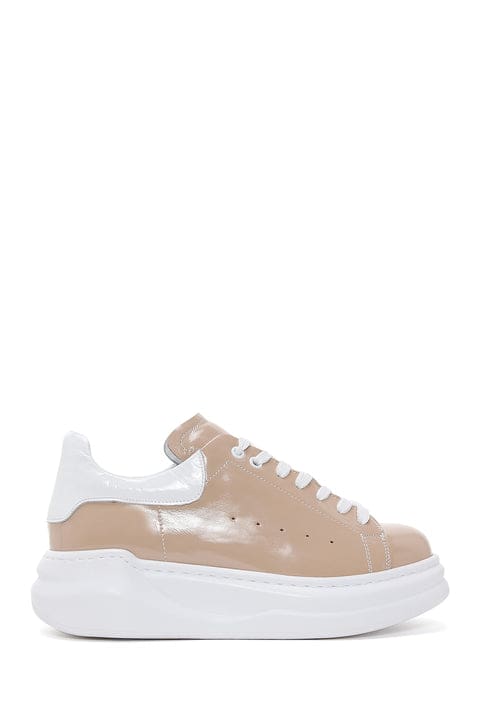 Kadın Bej Rugan Deri Kalın Tabanlı Sneaker