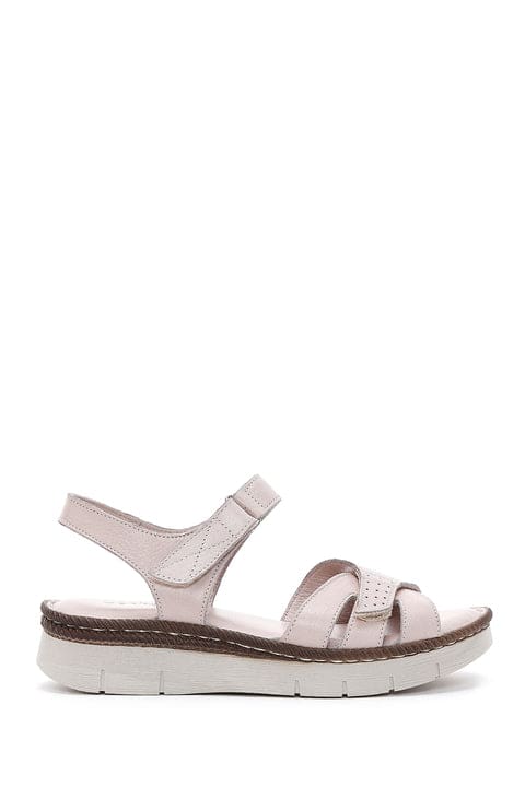 Kadın Bej Bilekten Bantlı Deri Comfort Sandalet