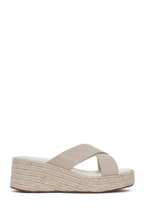 Kadın Bej Hasır Dolgu Topuklu Terlik