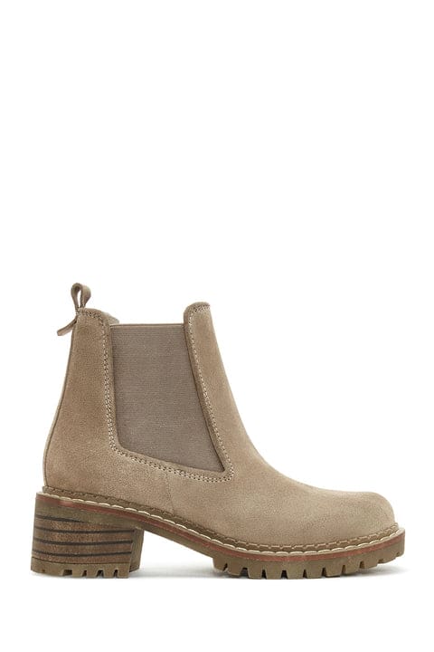 Kadın Bej Süet Deri Topuklu Chelsea Bot
