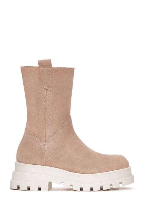 بوت زیپ دار چرم جیر بژ زنانه دری مد