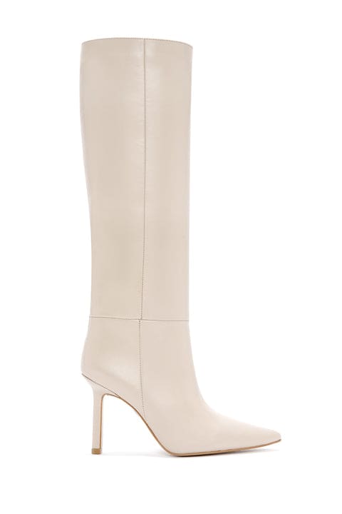 چکمه چرمی پاشنه نازک بژ زنانه دری مد