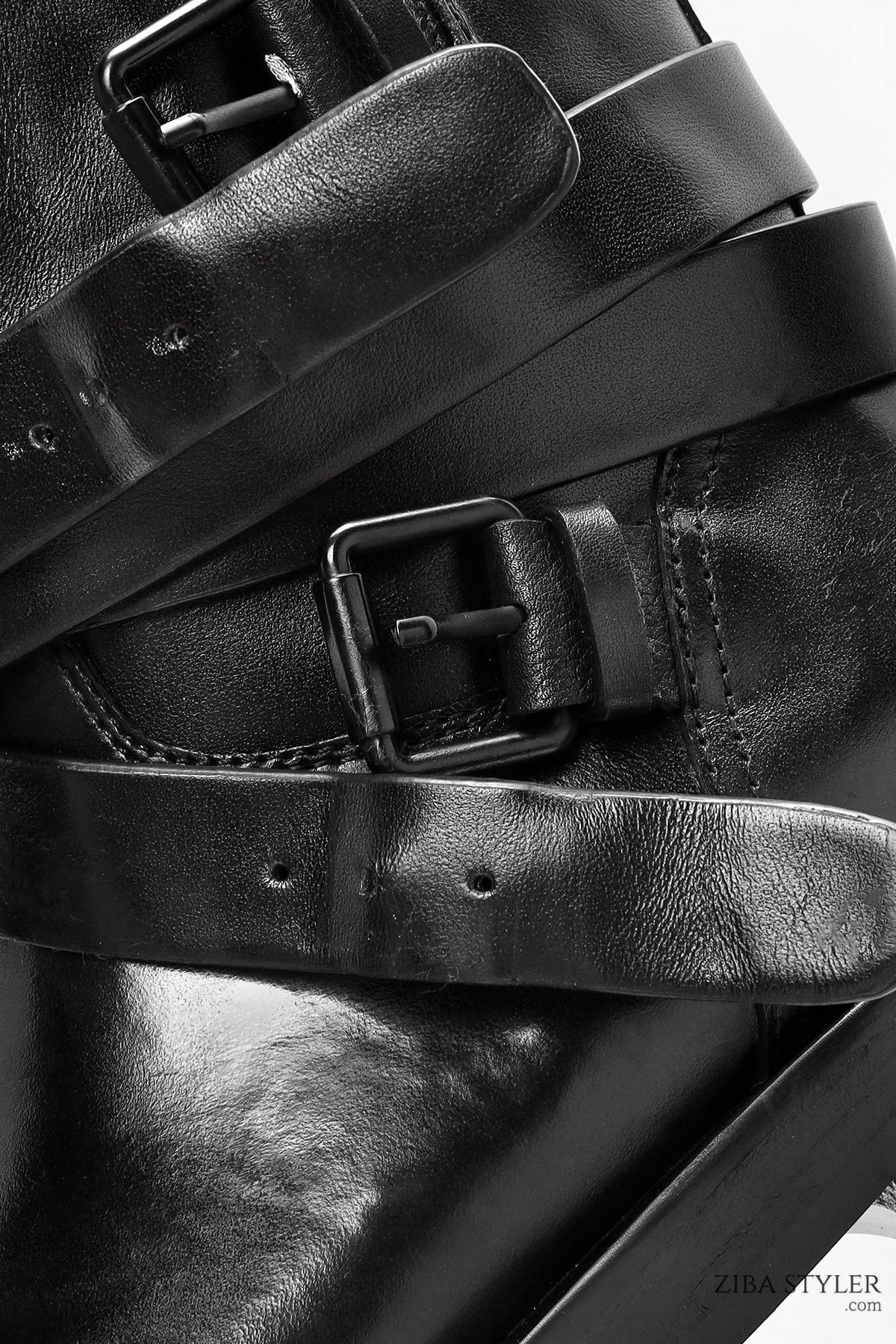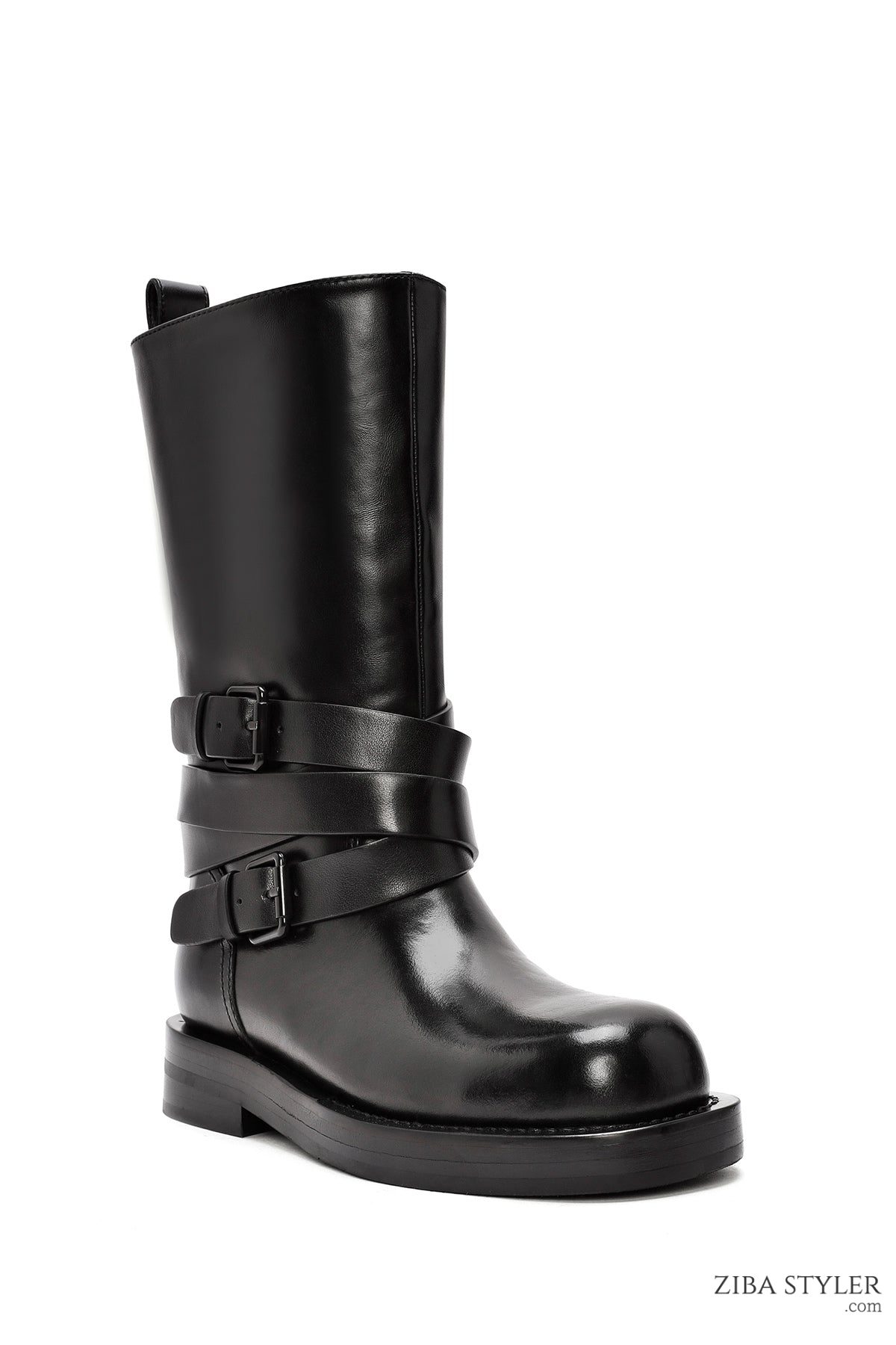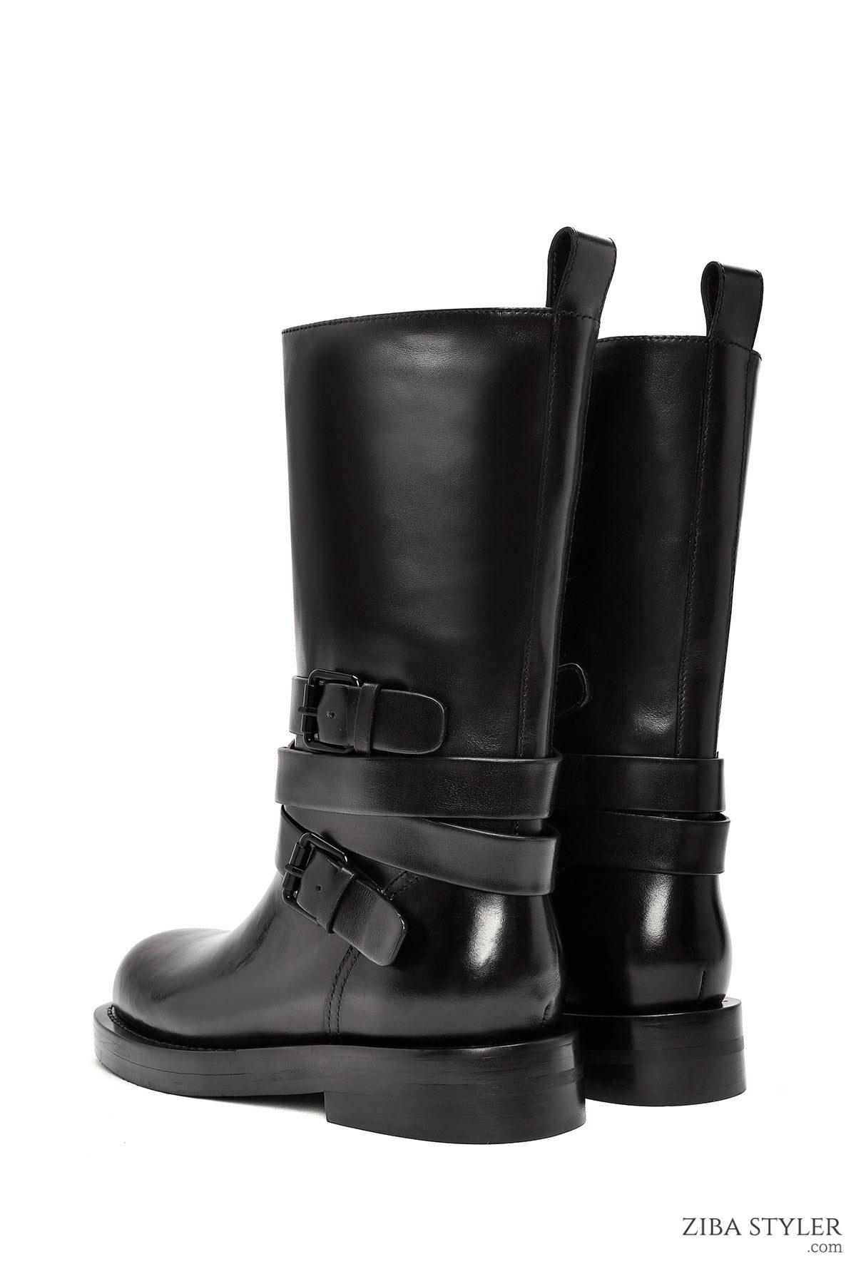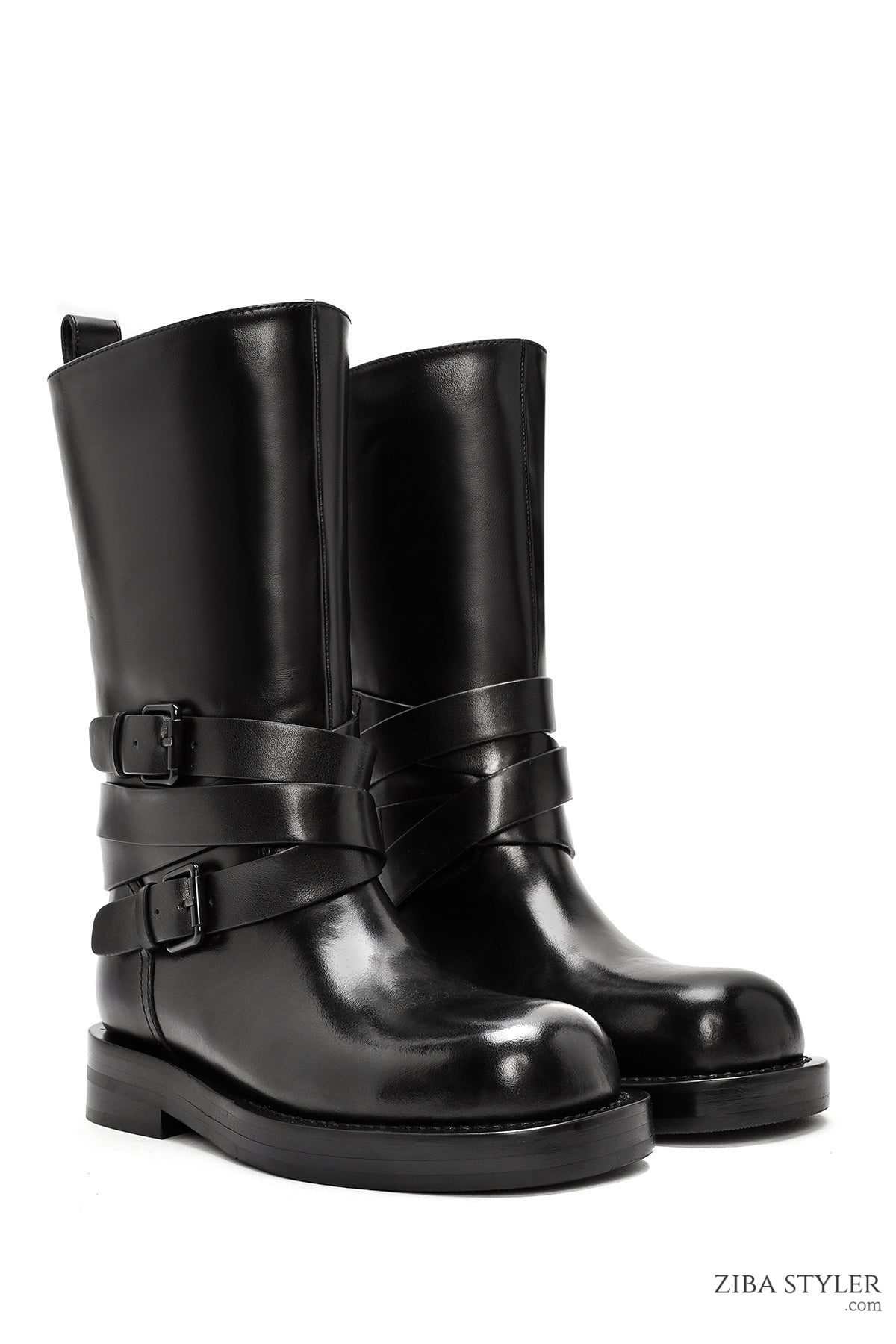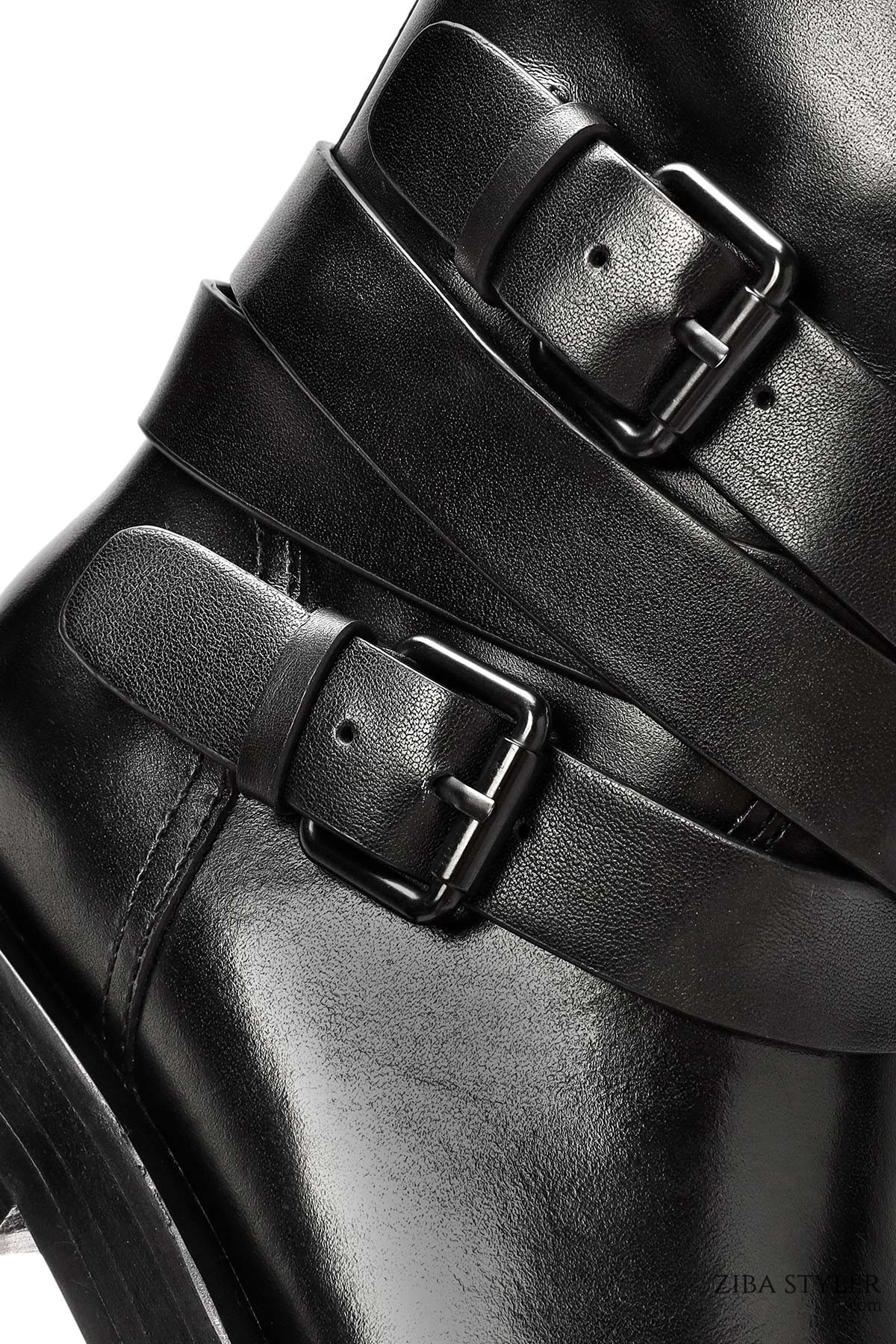 Kadın Siyah Tokalı Biker Deri Bot