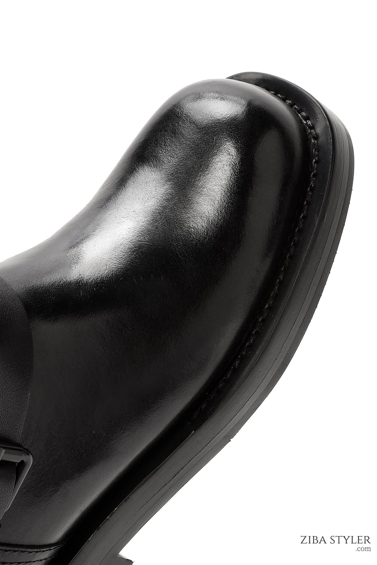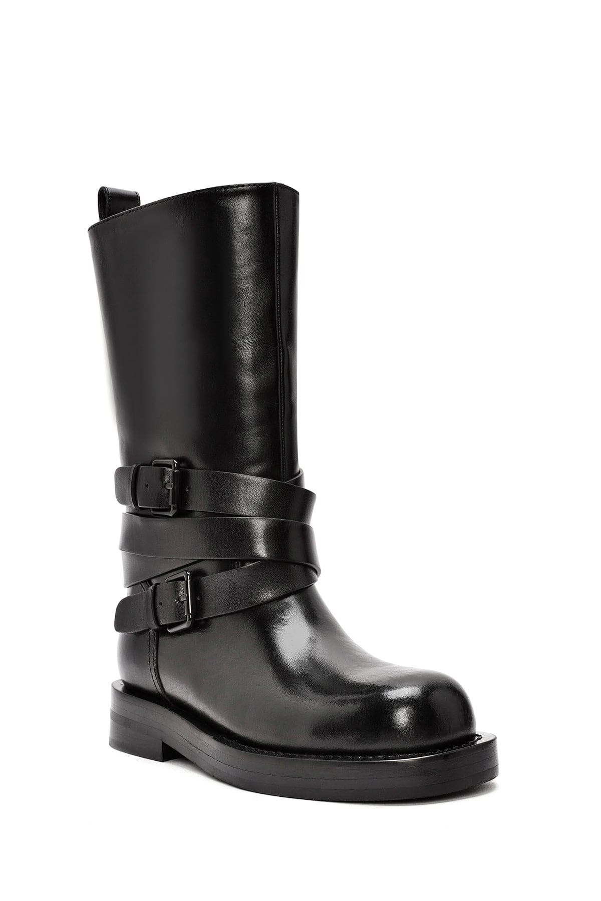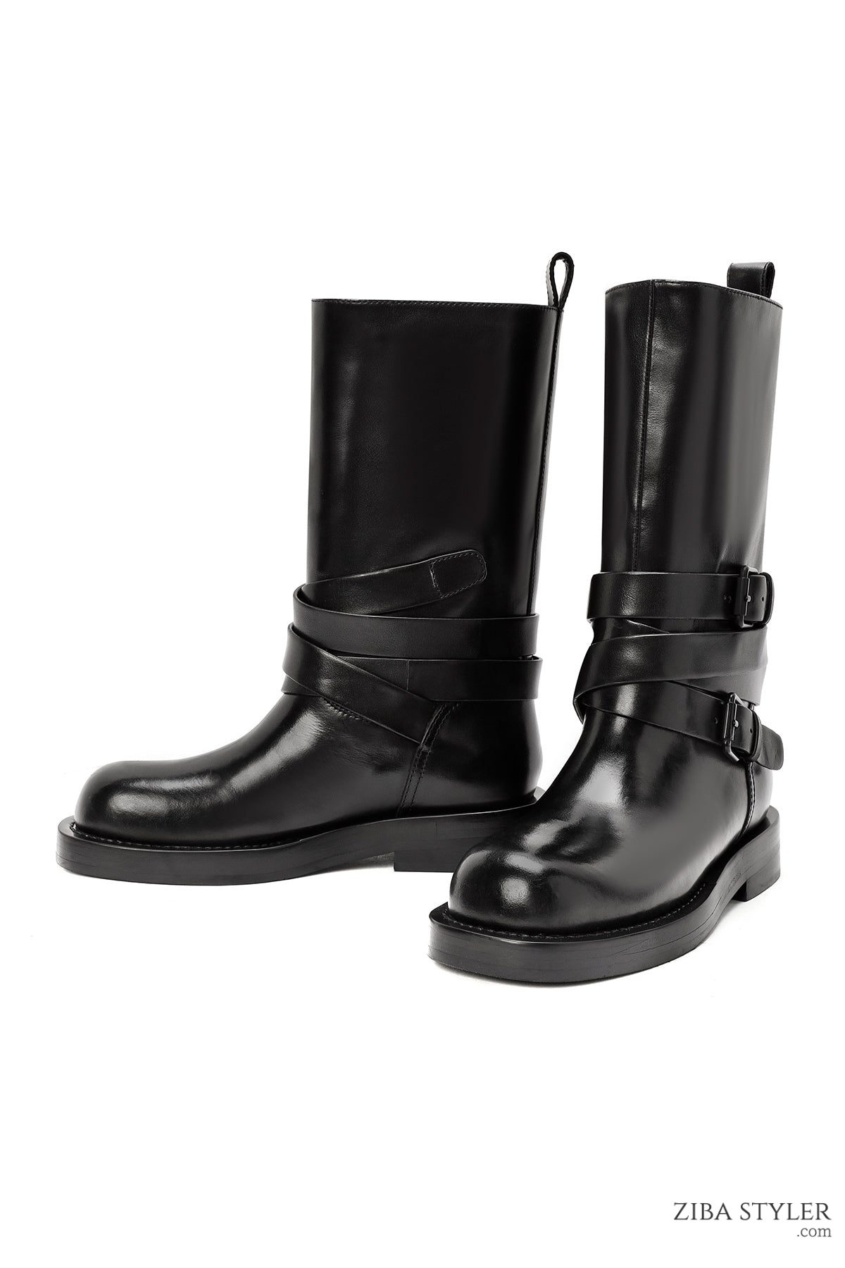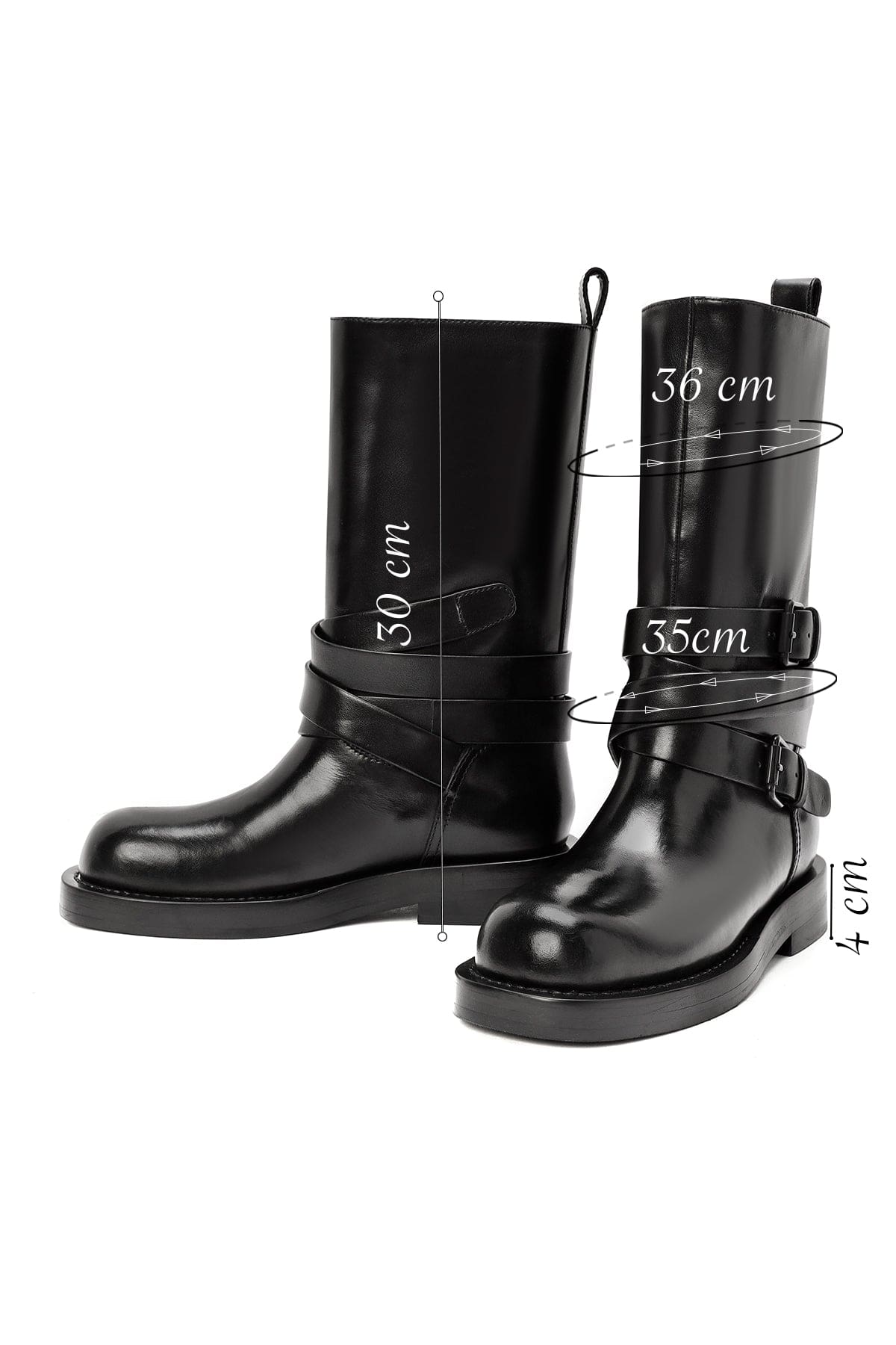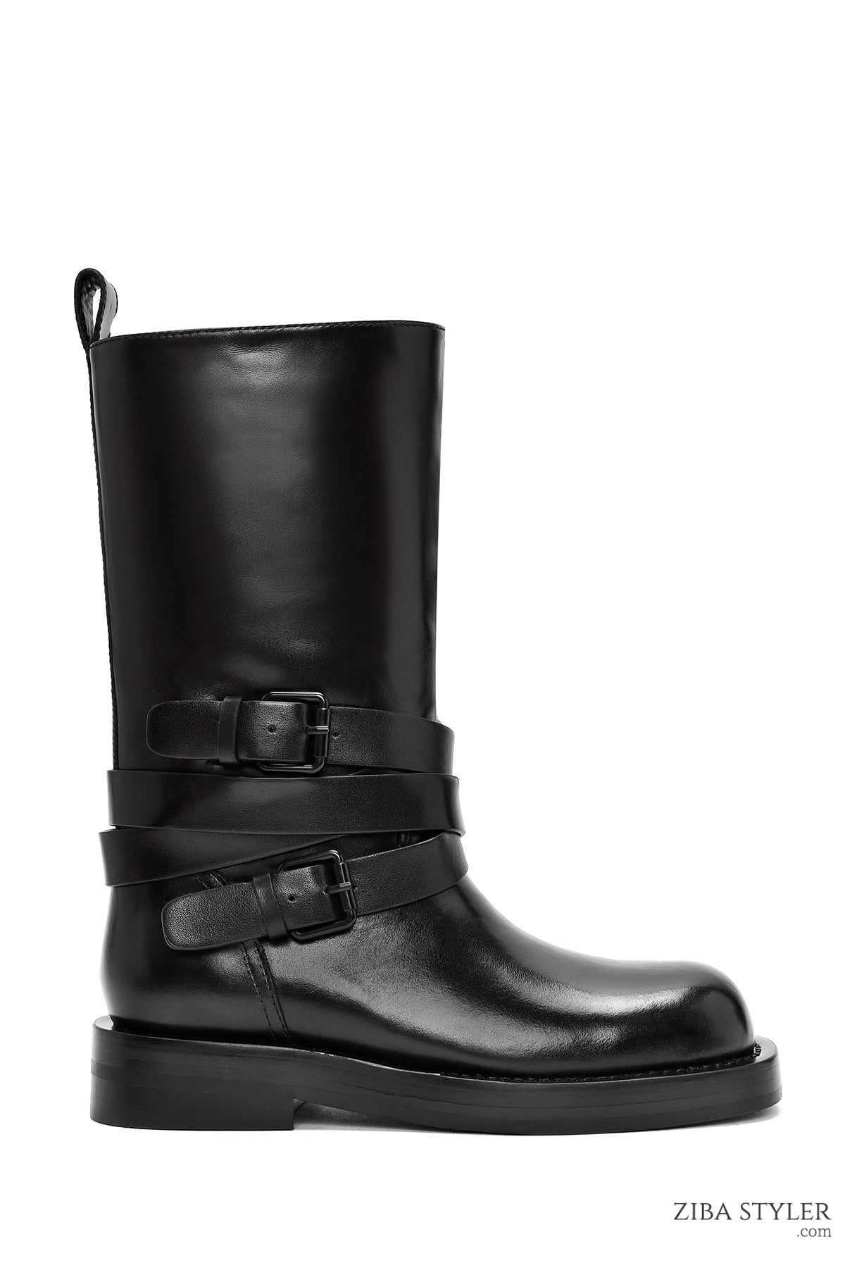 Kadın Siyah Tokalı Biker Deri Bot
