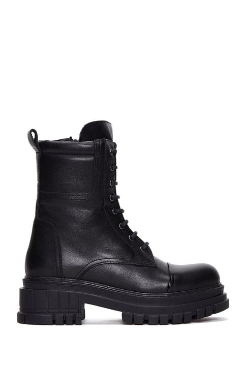 Kadın Siyah Postal Fermuarlı Deri Bot