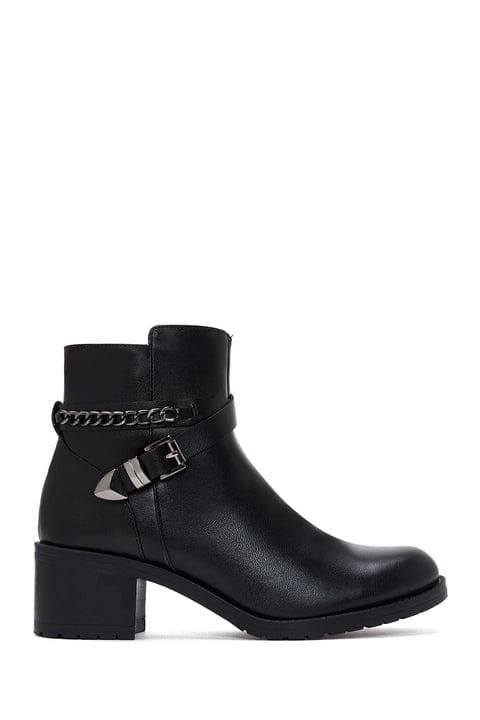 Kadın Siyah Fermuarlı Toka Detaylı Kısa Topuklu Bot