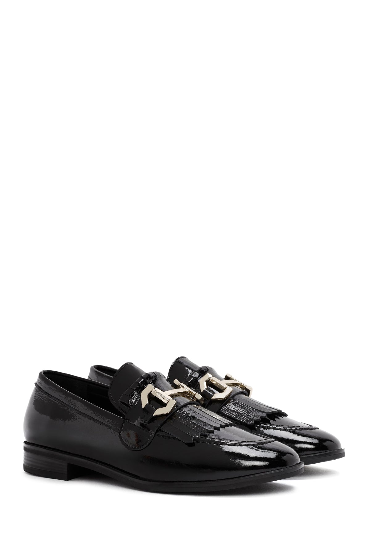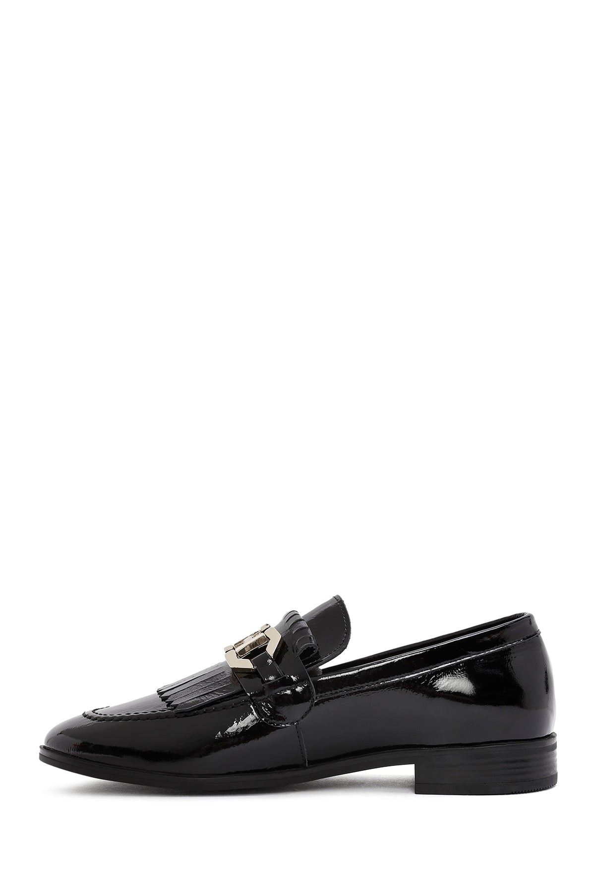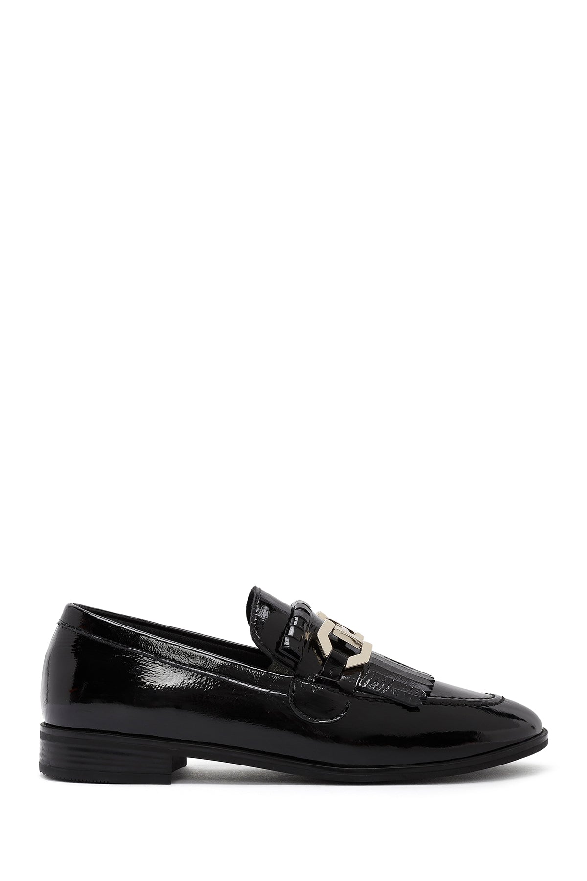 Kadın Siyah Toka Detaylı Rugan Deri Maskülen Loafer