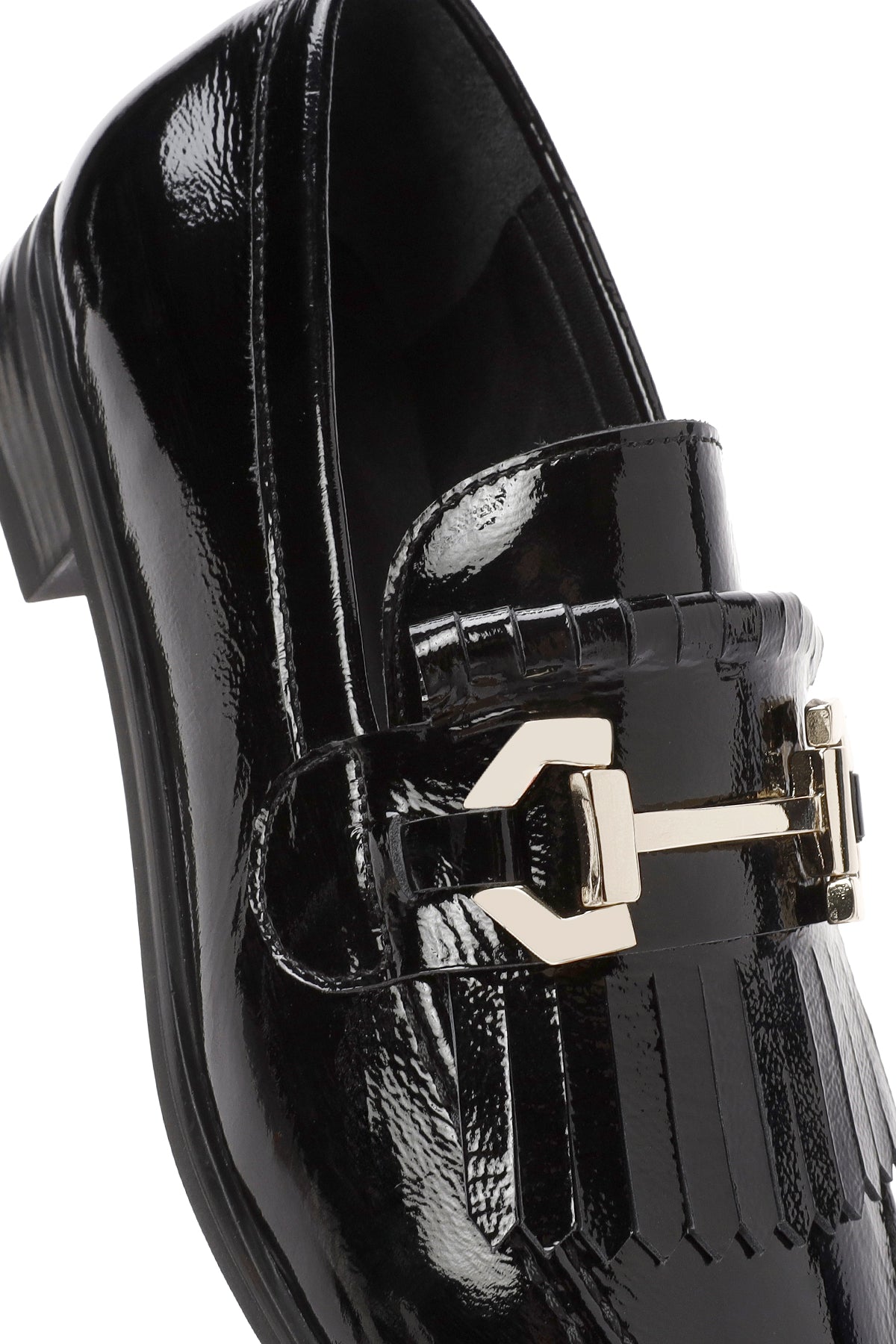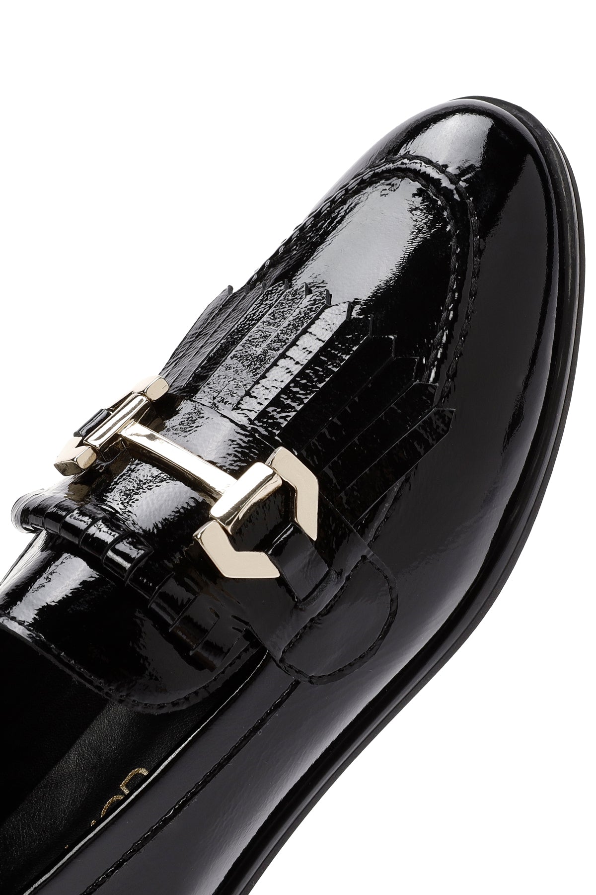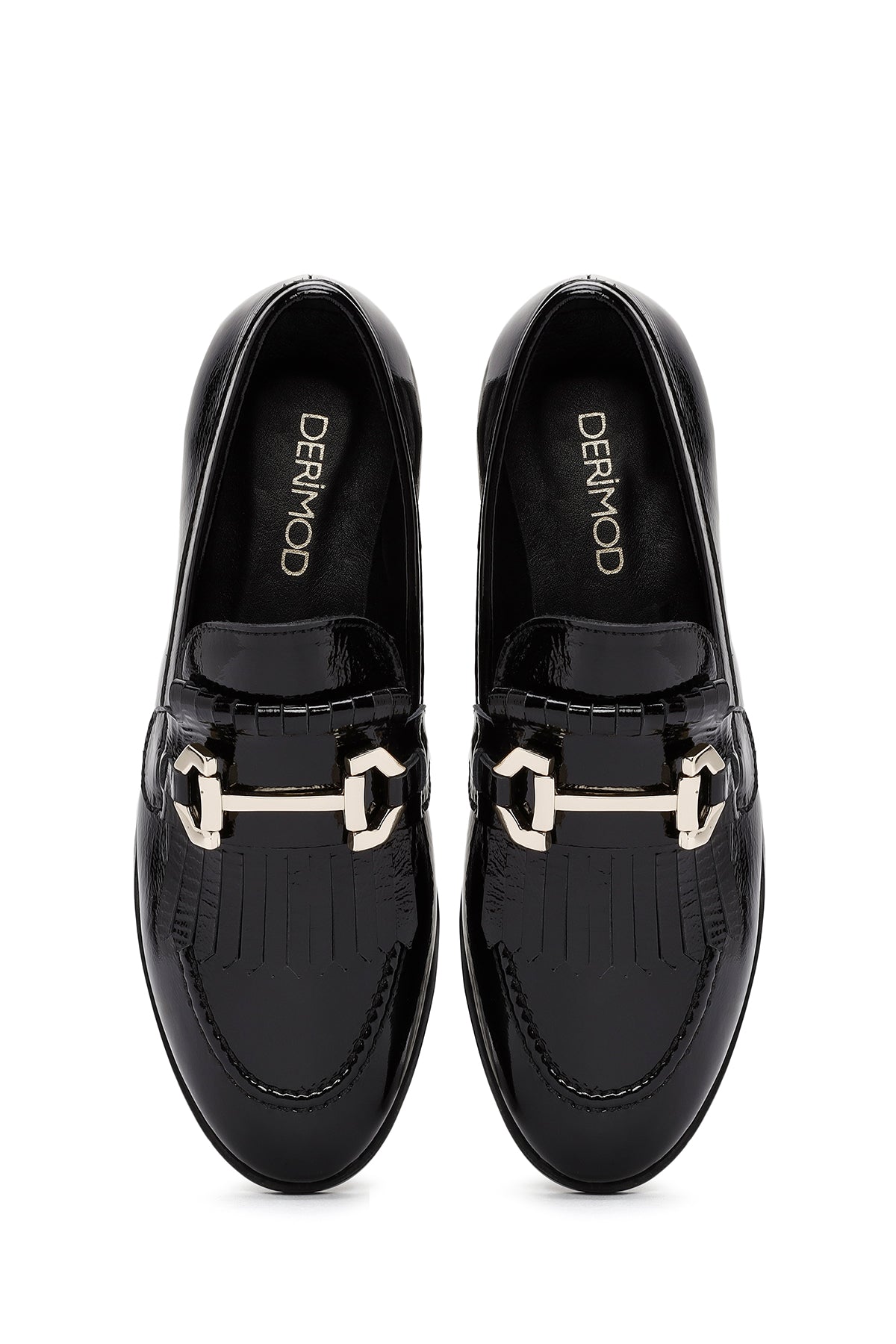 Kadın Siyah Toka Detaylı Rugan Deri Maskülen Loafer