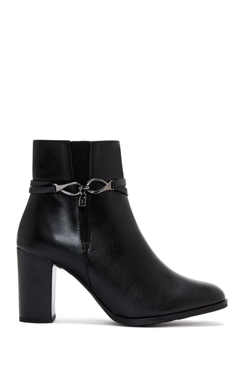 Kadın Siyah Tokalı Kalın Topuklu Klasik Bot