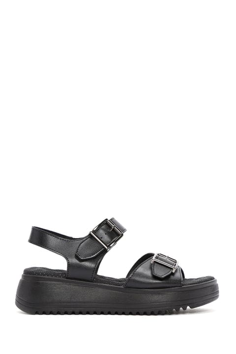 Kadın Siyah Kalın Tabanlı Bilekten Bantlı Comfort Sandalet
