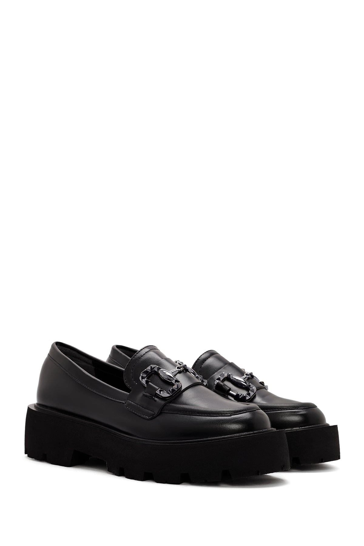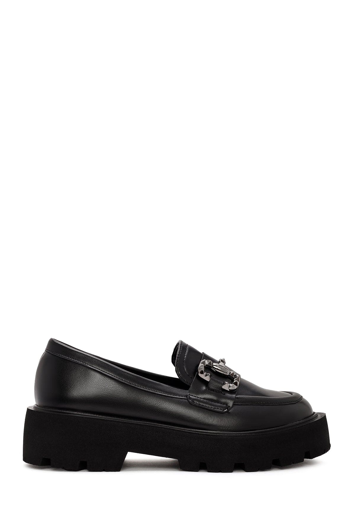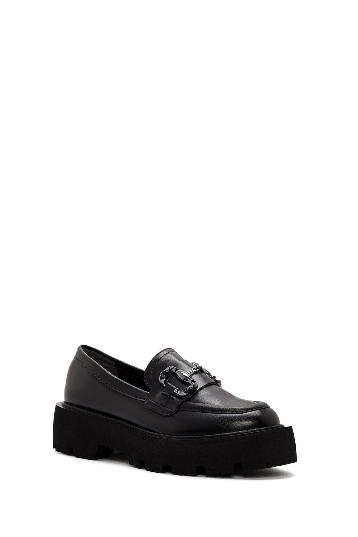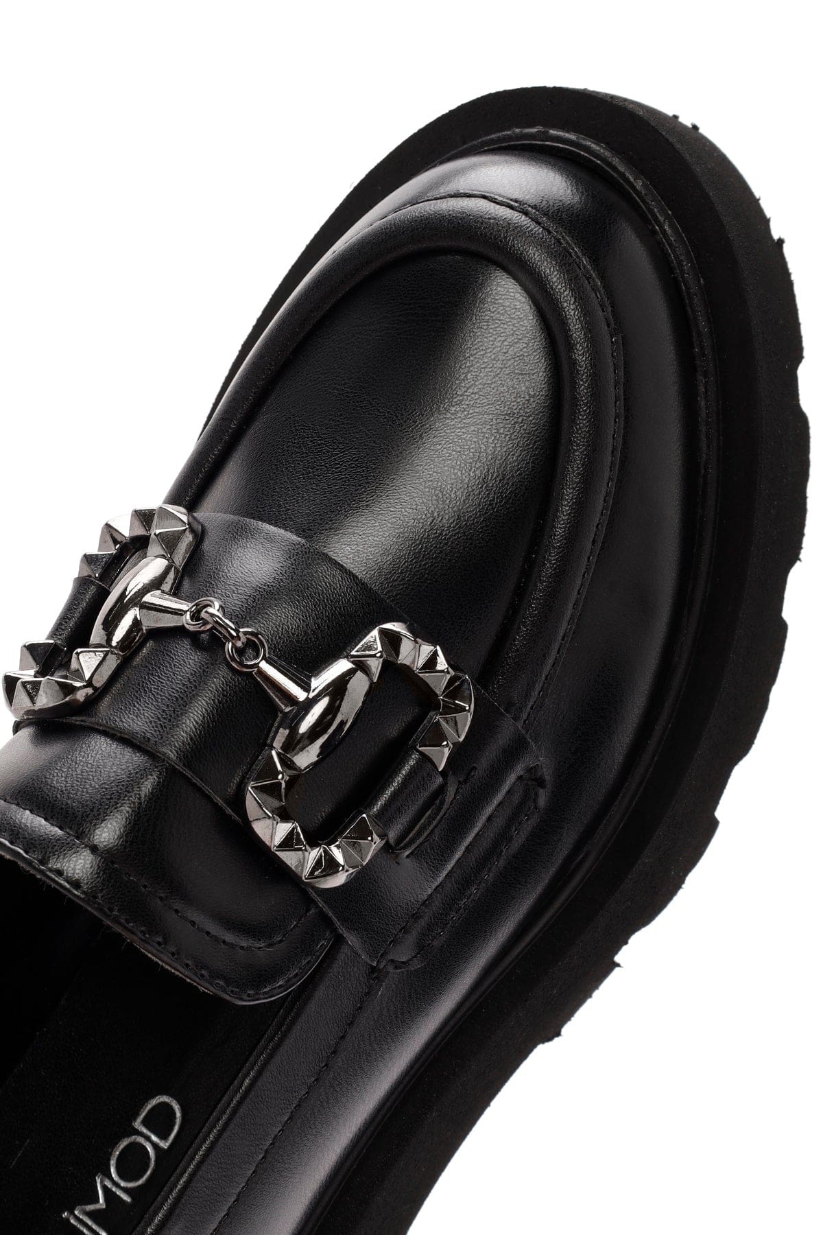 Kadın Siyah Toka Detaylı Maskülen Loafer