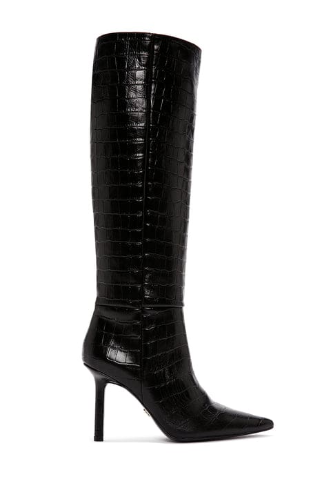 Kadın Siyah Kroko Desenlii İnce Topuklu Deri Çizme