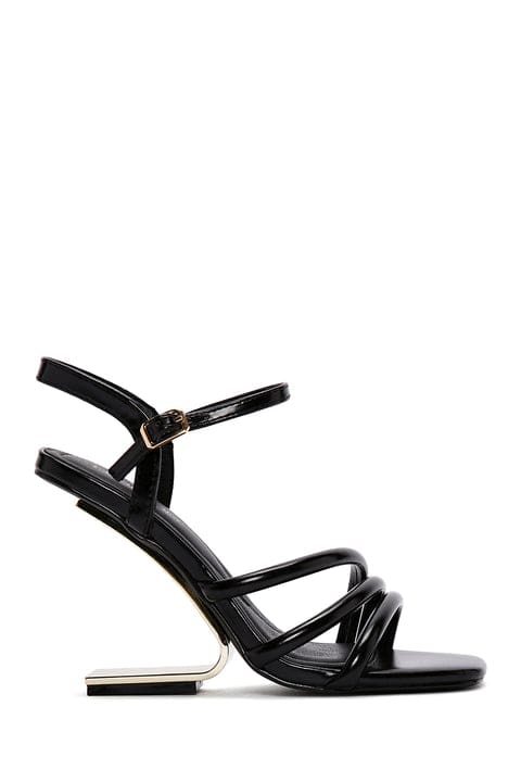 Kadın Siyah Bilekten Bantlı Topuklu Sandalet