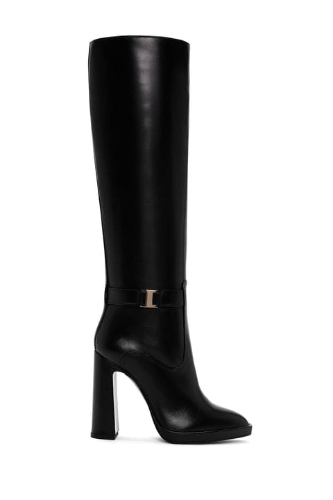 Kadın Siyah Kalın Yüksek Topuklu Deri Çizme