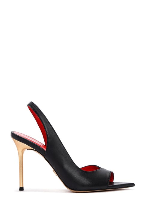 Kadın Siyah Yüksek Topuklu Deri Sandalet