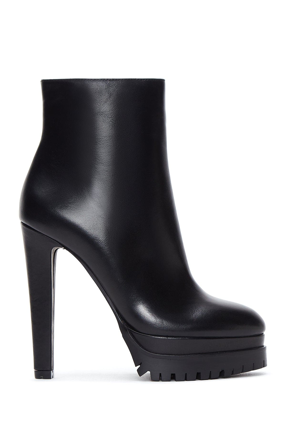 Kadın Siyah Fermuarlı Yüksek Topuklu Deri Bot