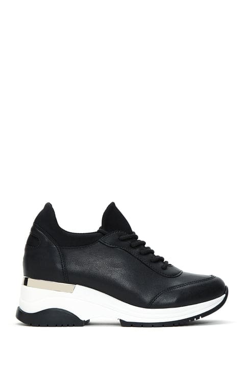 Kadın Siyah Bağcıklı Dolgu Topuklu Sneaker